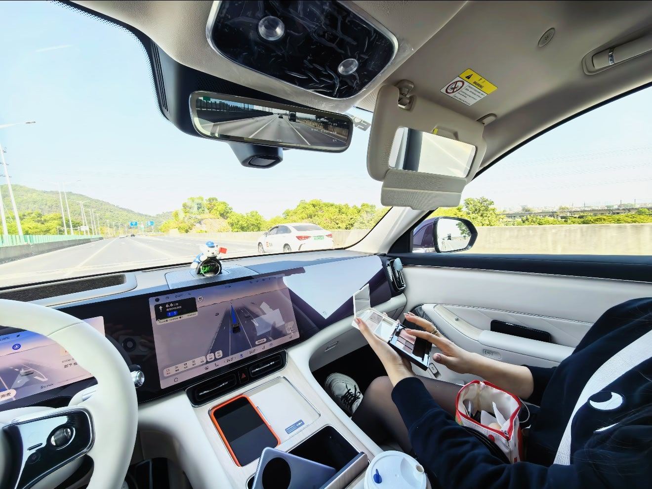 华为 ADS 有多稳?副驾驶在车内化妆都没问题。