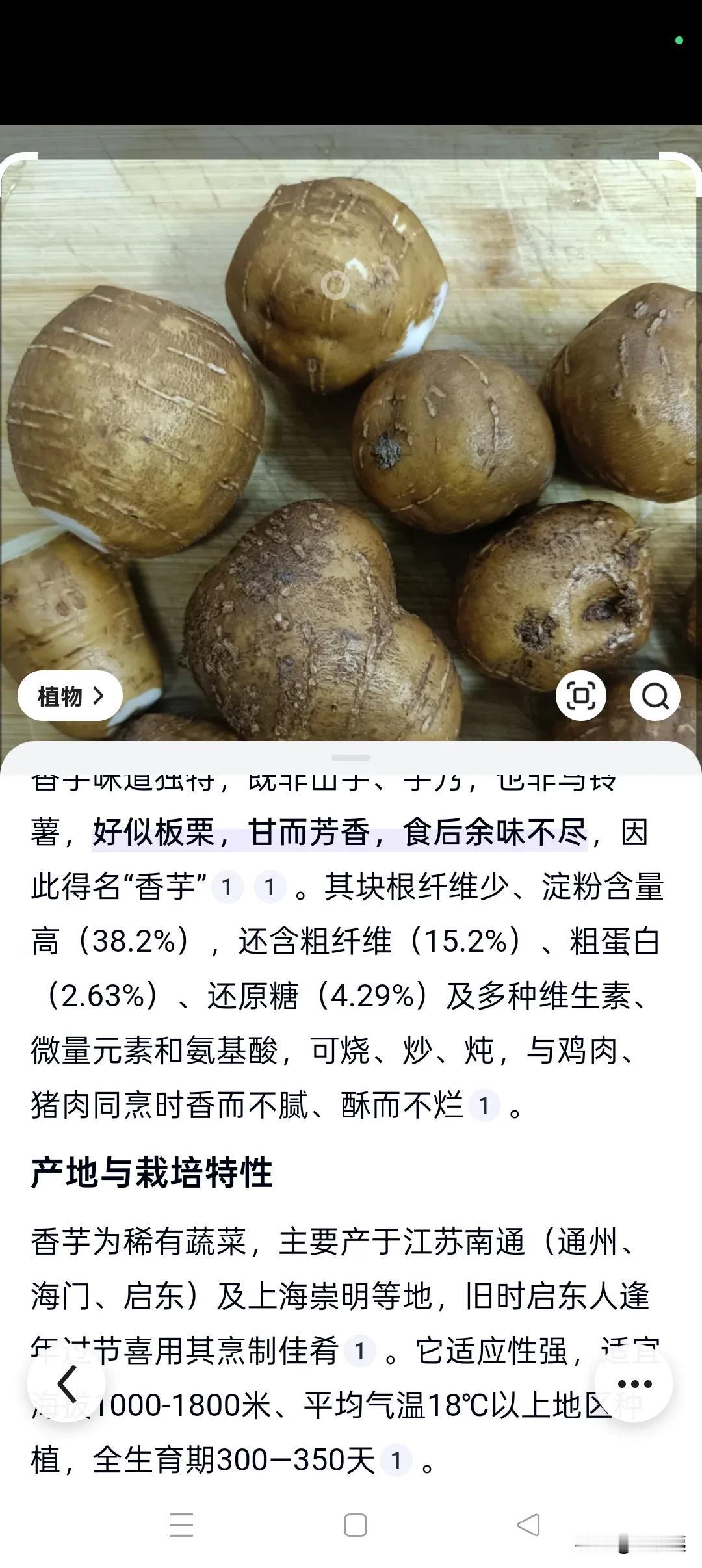 你们见过这个菜吗? 我是第一次吃,朋友给的[比心] 拍图用识万物查询,这是个稀有蔬菜[呲牙] 它的名字叫“香芋”,是南通部分地区的特产。 香芋中午和红烧肉一起煮了,真的久煮软而不烂,有一股香味,好吃[爱慕]