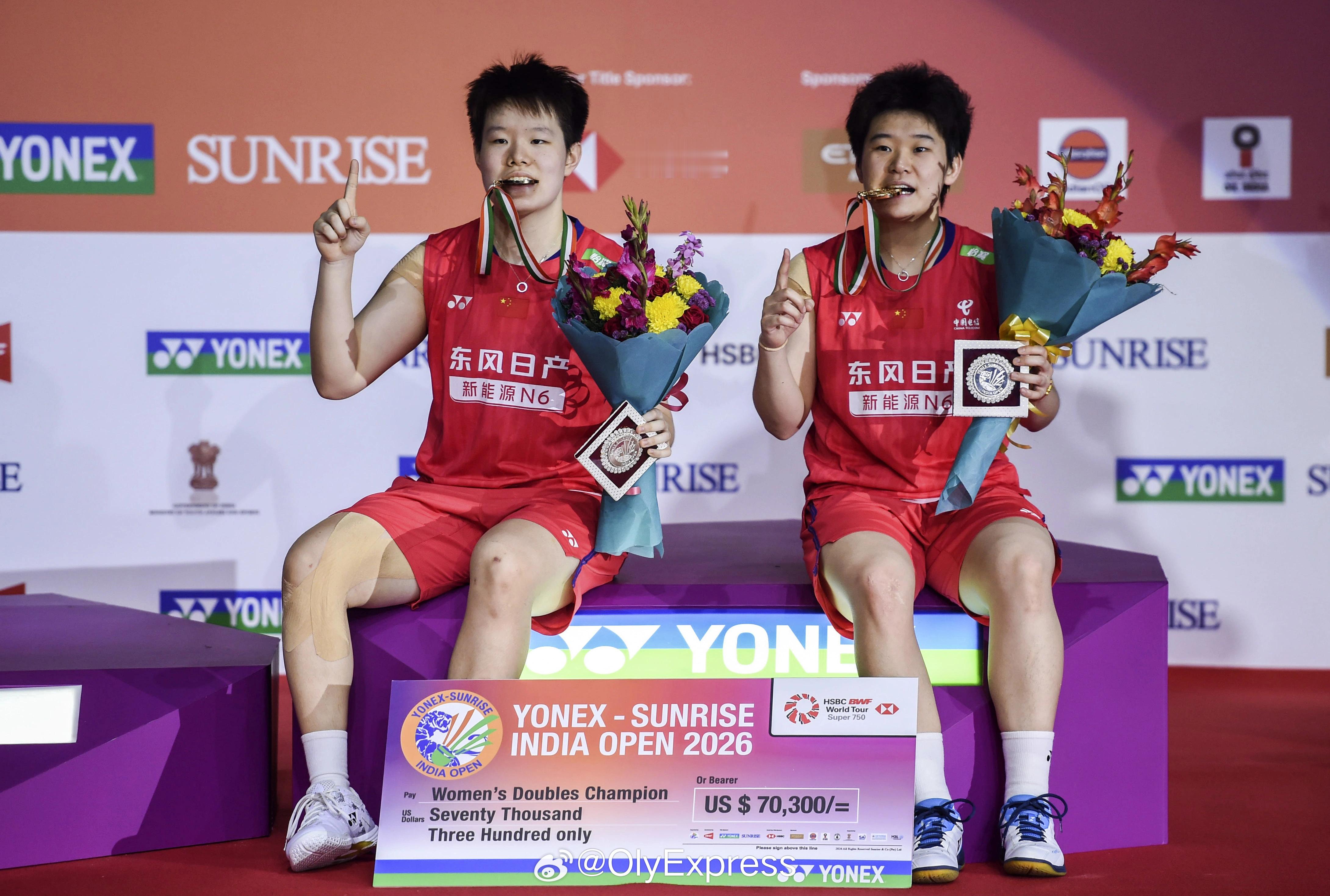 【印度羽毛球赛决赛赛果:国羽男女双打夺冠女单亚军】2026年印度羽毛球公开赛梁