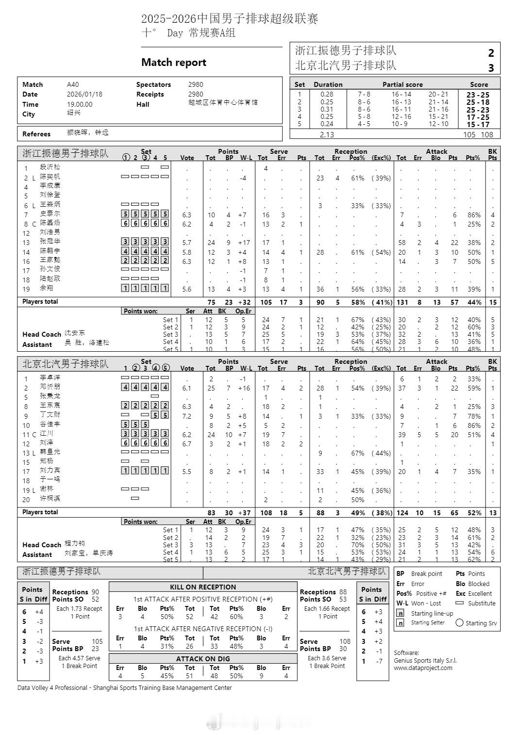 【排超男排联赛今日赛程对阵】排超联赛 1月18日,男排联赛赛程对阵(主队在前):