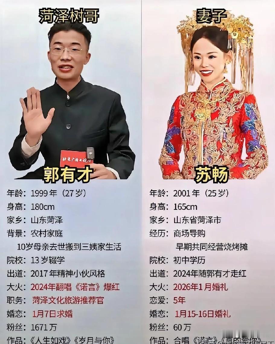 司马相如卓文君的爱情故事如今有了现代版,那就是讲授《道德经》的郭有才与她老婆苏畅。学历不高,还做点小本生意到如今千万粉丝,受到千万人追捧,堪称传奇了。 郭有才,初中毕业,白天烤串满手油,晚上抱着吉他开直播,一本《道德经》被他讲得连隔壁卖西瓜的大爷都来听。最绝的是他媳妇苏畅——这山东姑娘硬是陪他从一天赚百十块熬到现在,直播间涌进百万人。 有人说是运气,要我看,这夫妻档赢就赢在三点:人设真实不造作,内容反差够强烈,最关键的是俩人一条心。流量来了多少人把持不住?但苏畅在身边,郭有才就还是那个围着烤炉转的实在人。 如今这时代,传奇不需要私奔夜奔。能在烟火气里守住一份踏实,在浮躁中还能静下心讲几句老祖宗的智慧,这比什么剧情都动人。 他们火的不只是流量,是每个普通人心里那点不甘平凡的念想——谁说不烤串的厨子,就不能是个哲学家?突然觉得,最动人的情话不是“我养你”,而是“你尽管唱,摊子我看着”。 (图片来源于网络) 郭有才郭有才夫妻表演 郭有才宠妻日常 汉朝才女卓文君 卓文中兴