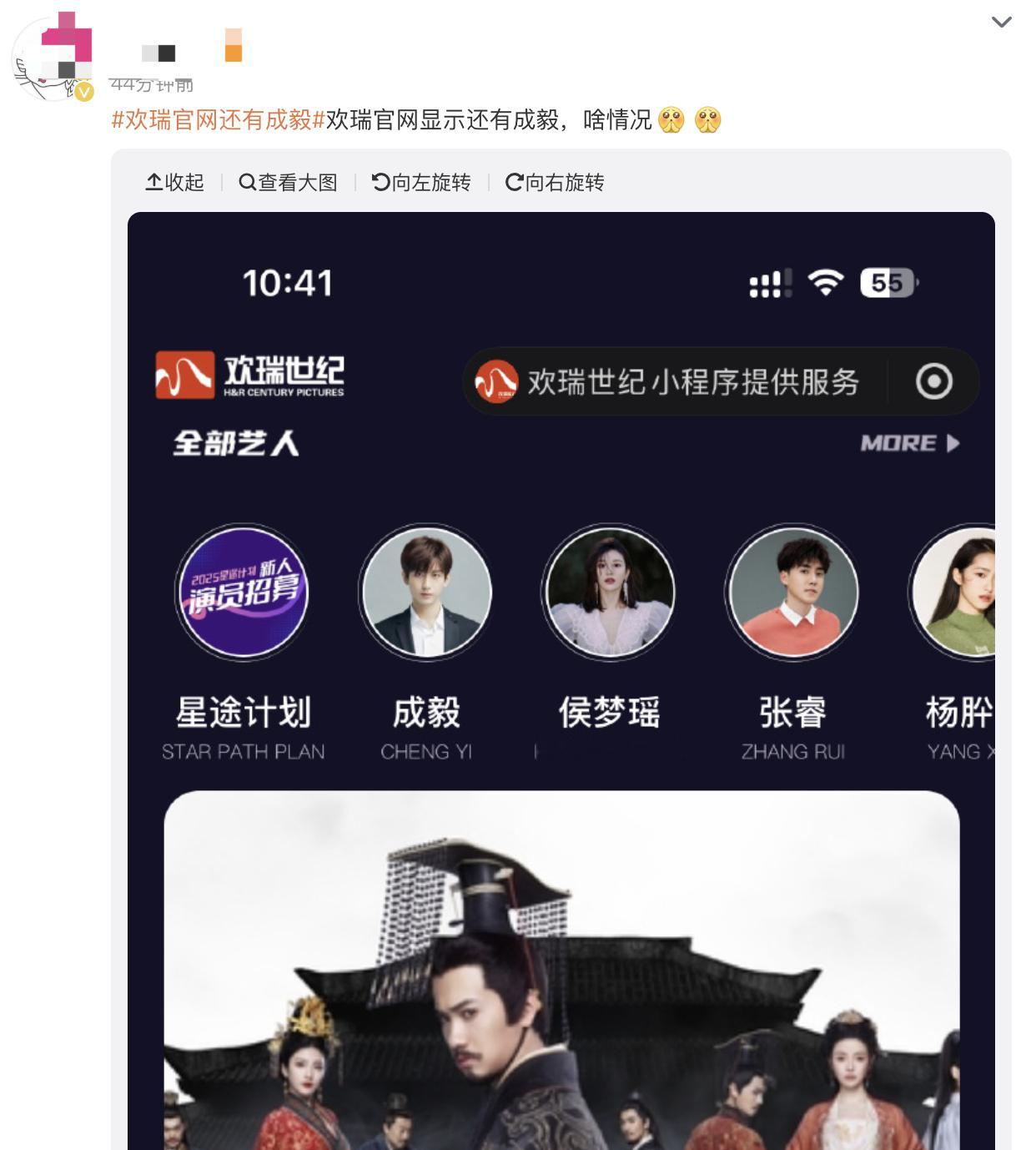 成毅解约这事情好奇妙啊欢瑞:成毅还在;成毅:昨天已经结束合约了。欢瑞官网还有成毅