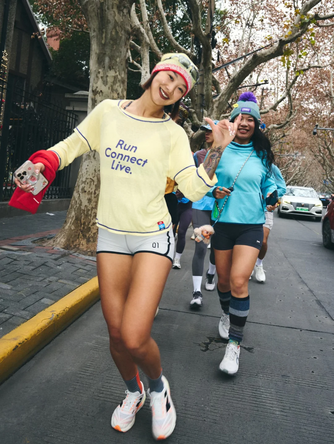 虽说每周也要跑个4-5次,但没有姐妹带着真的难熬啊!这次借着Taxxxi新店开业,一群时髦的人儿一起跑,果然轻松有趣多了。 跑在上海的街头,特别是绕着梧桐区跑,看见吹口琴的大爷姨姨们,仿佛是给我们跑步伴奏!感叹真的是大上海,浪漫、包容又时髦!太爱我的家了❤️