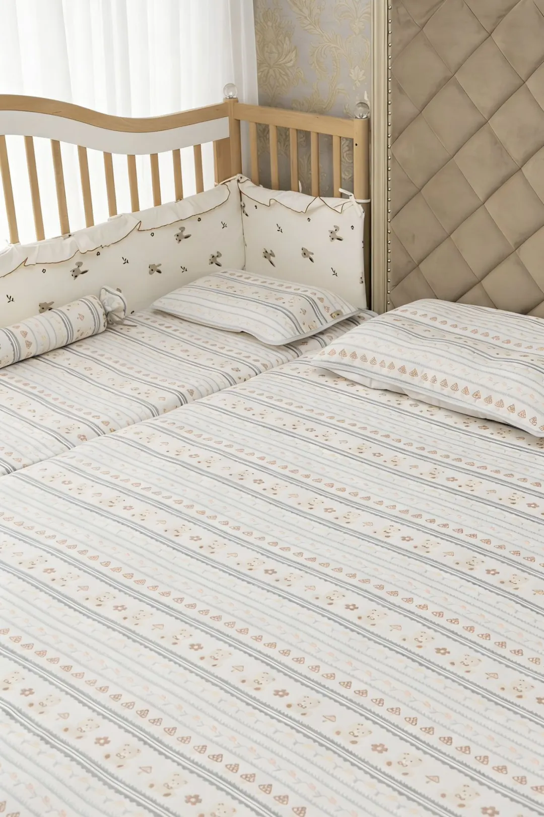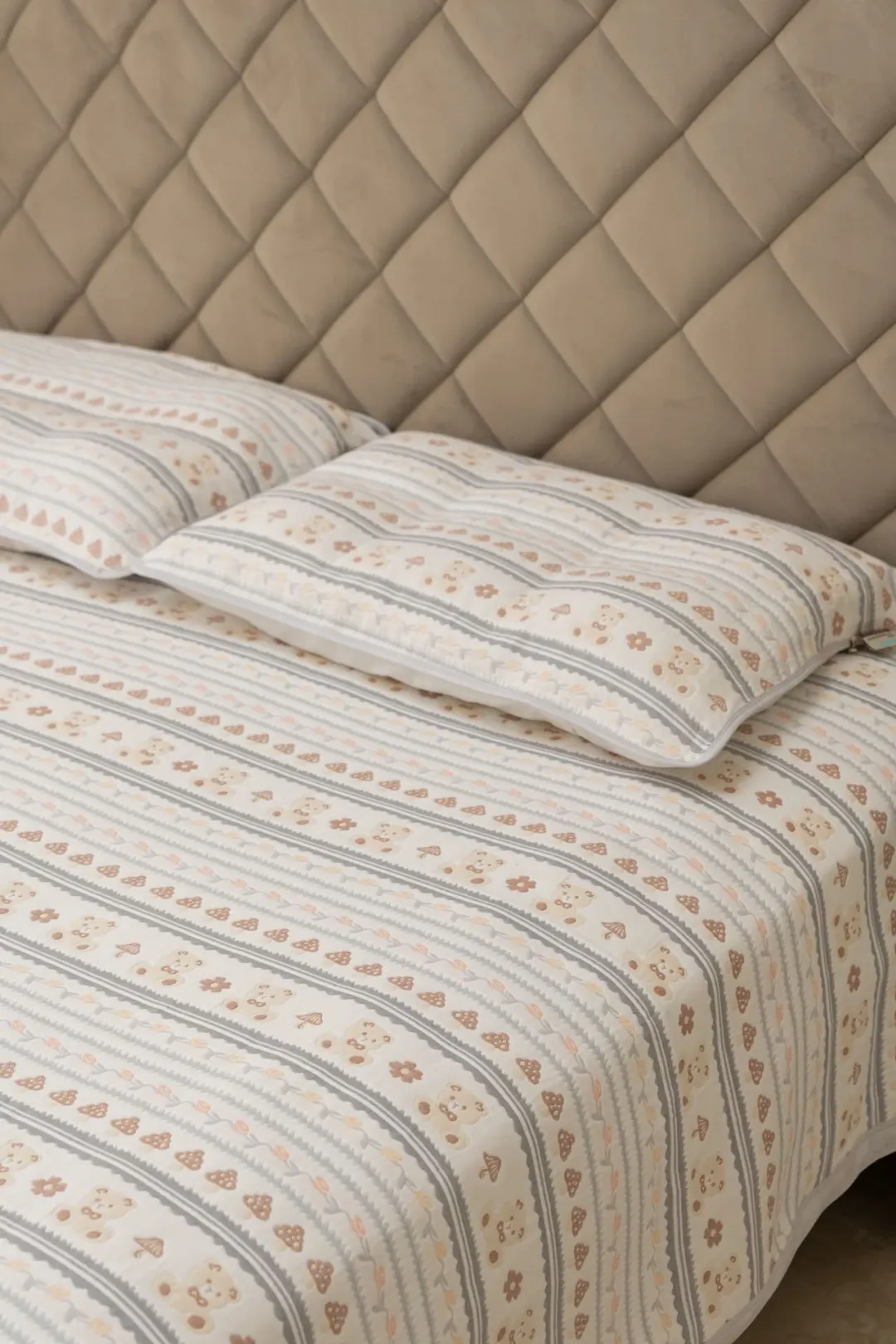 独创六层纱布立体编织 百万透气微孔实现动态调温 北方暖气房不闷燥,南方梅雨季不返潮 亲子床四季铺都适配~
