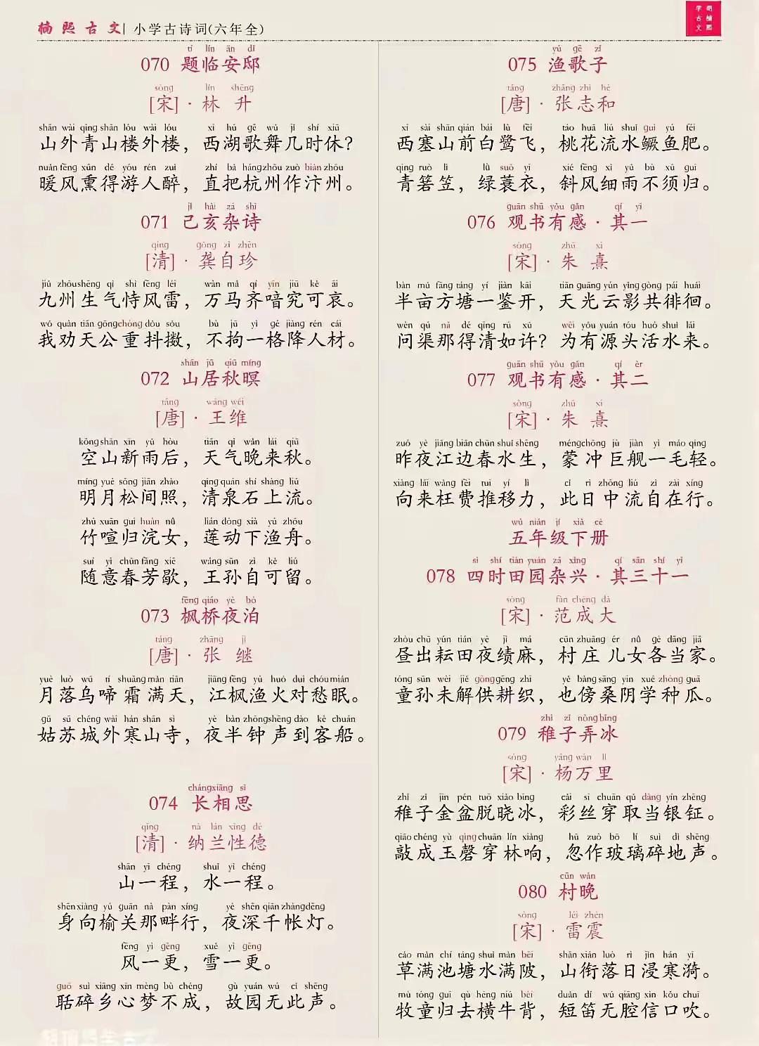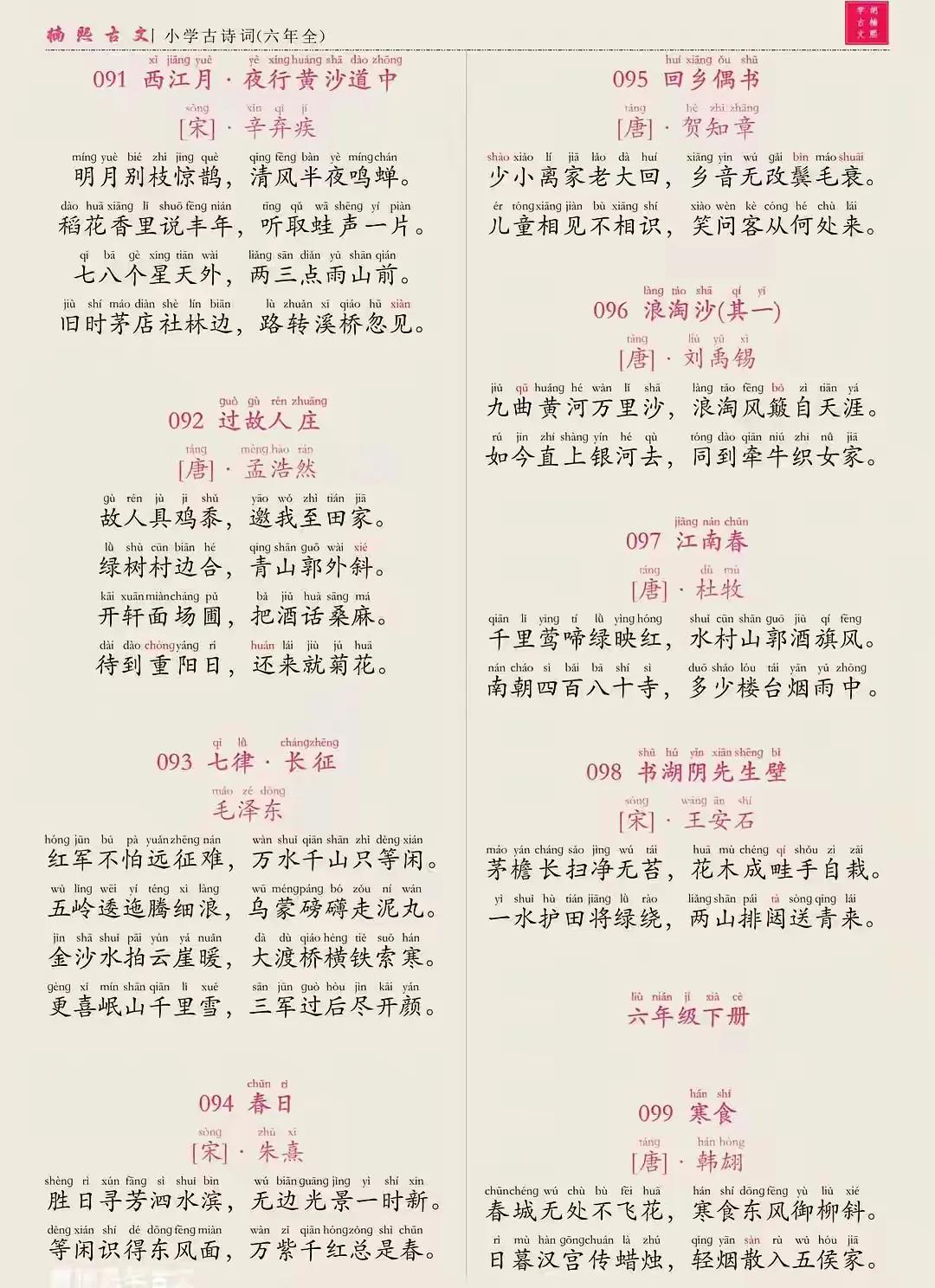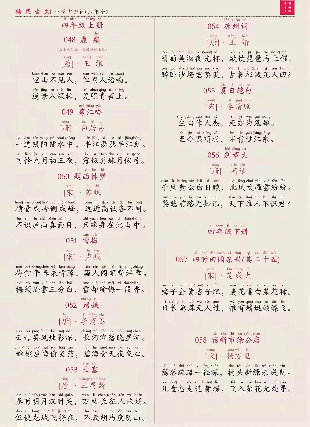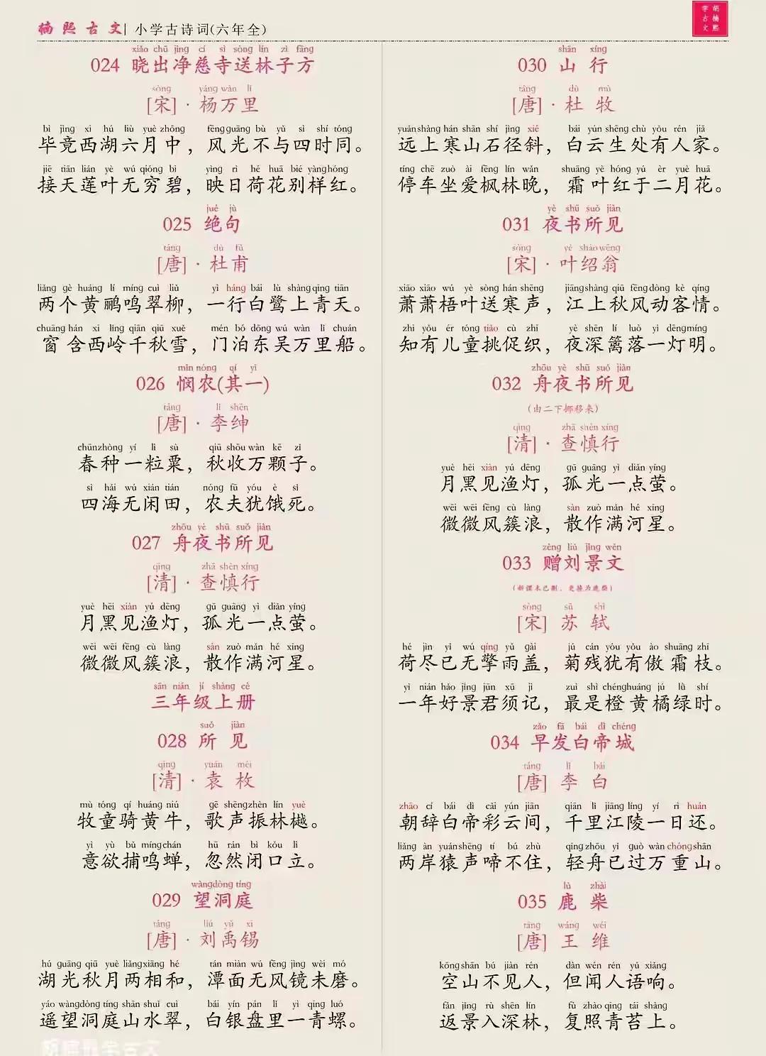 三年级下册语文寒假预习必背诵默写内容古诗词