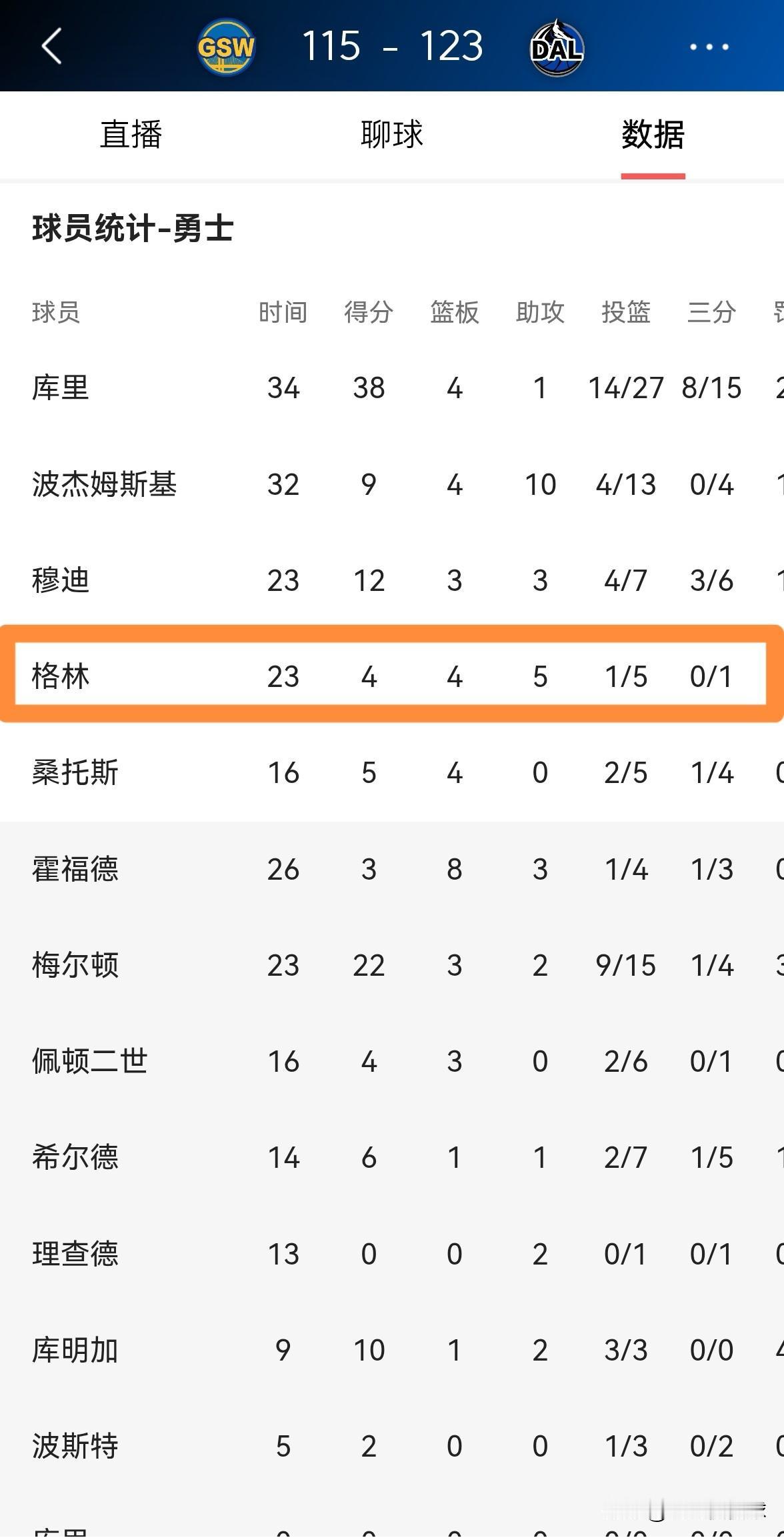 我强烈建议勇士立刻交易走追梦格林,他就是球队的祸水!在今天勇士客场以115:123不敌独行侠的比赛中,追梦格林的表现真是糟糕至极,他在首发出战的23分钟里,投篮5中1,其中三分球1中0、罚球2中2非常低效的得到4分,还有3次失误和6次犯规,他的场上正负值为-15。 毫不客气的说,如果勇士不把追梦格林交易走,勇士真的彻底的完了,因为追梦格林现在的心思并不在帮助球队赢球上面。