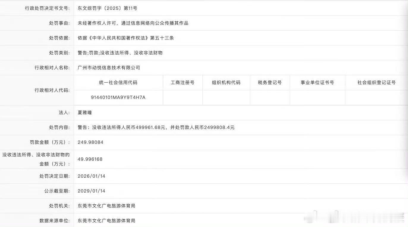 夸克和UC被行政处罚责令整改 【夸克和UC被行政处罚355万没收违法所得71万 】近日,东莞市文化广电旅游体育局分别对夸克、UC侵犯信息网络传播权案件做出行政处罚。信用中国(广东东莞)公布的信息显示,广州市动悦信息技术有限公司被处罚警告,没收违法所得人民币499961.68元,处罚款人民币2499808.4元;广州市动景计算机科技有限公司被处罚警告;没收违法所得人民币210196.26元,处罚款人民币1050981.3元。执法部门认定两家公司的产品存在未经著作权人许可,通过信息网络向公众传播其作品的违法行为,责令立即停止违法行为并进行整改。