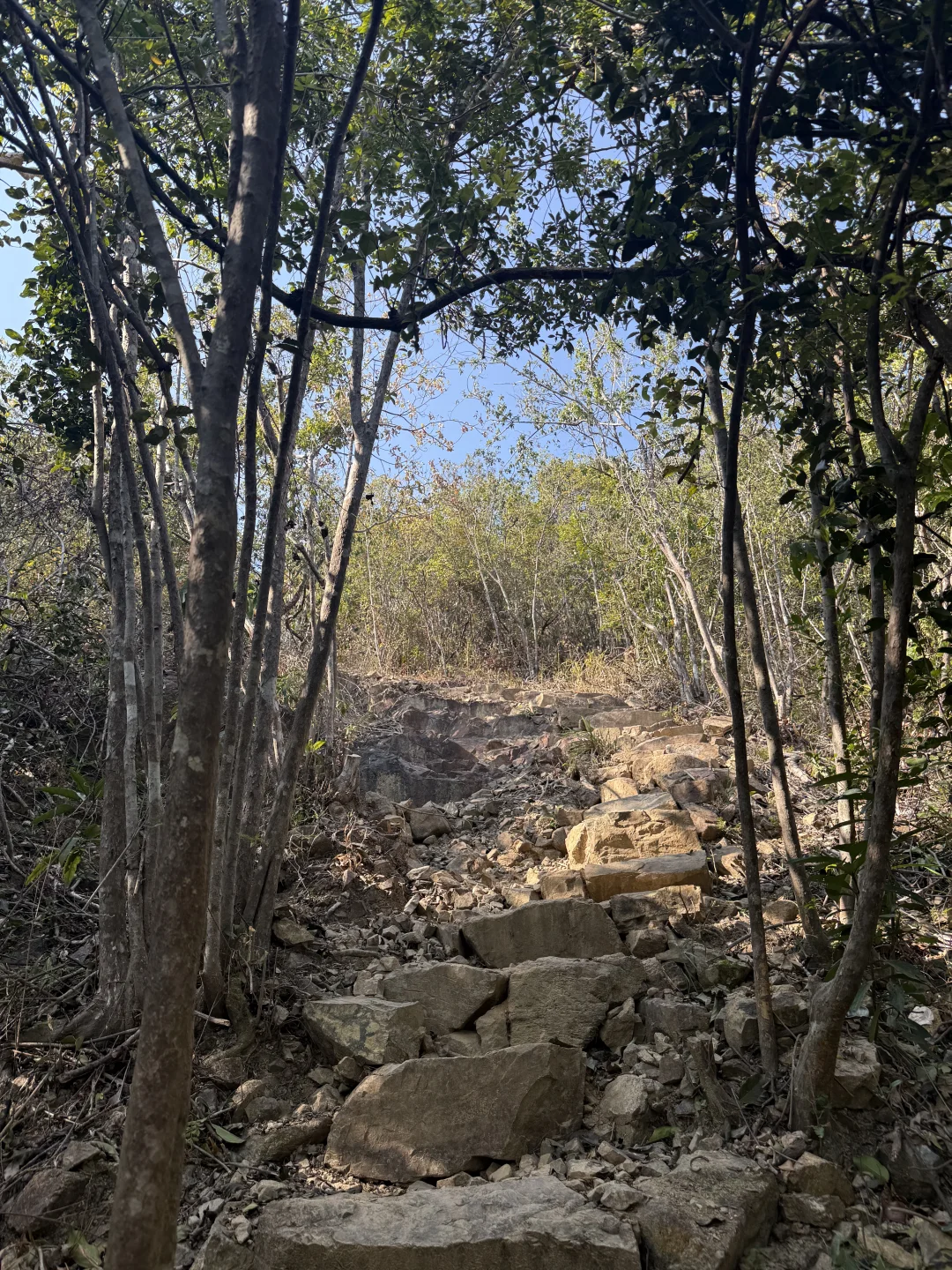 1. 路况偏原始!石阶+野路都比较狭窄,爬升较急,注意脚下和落石