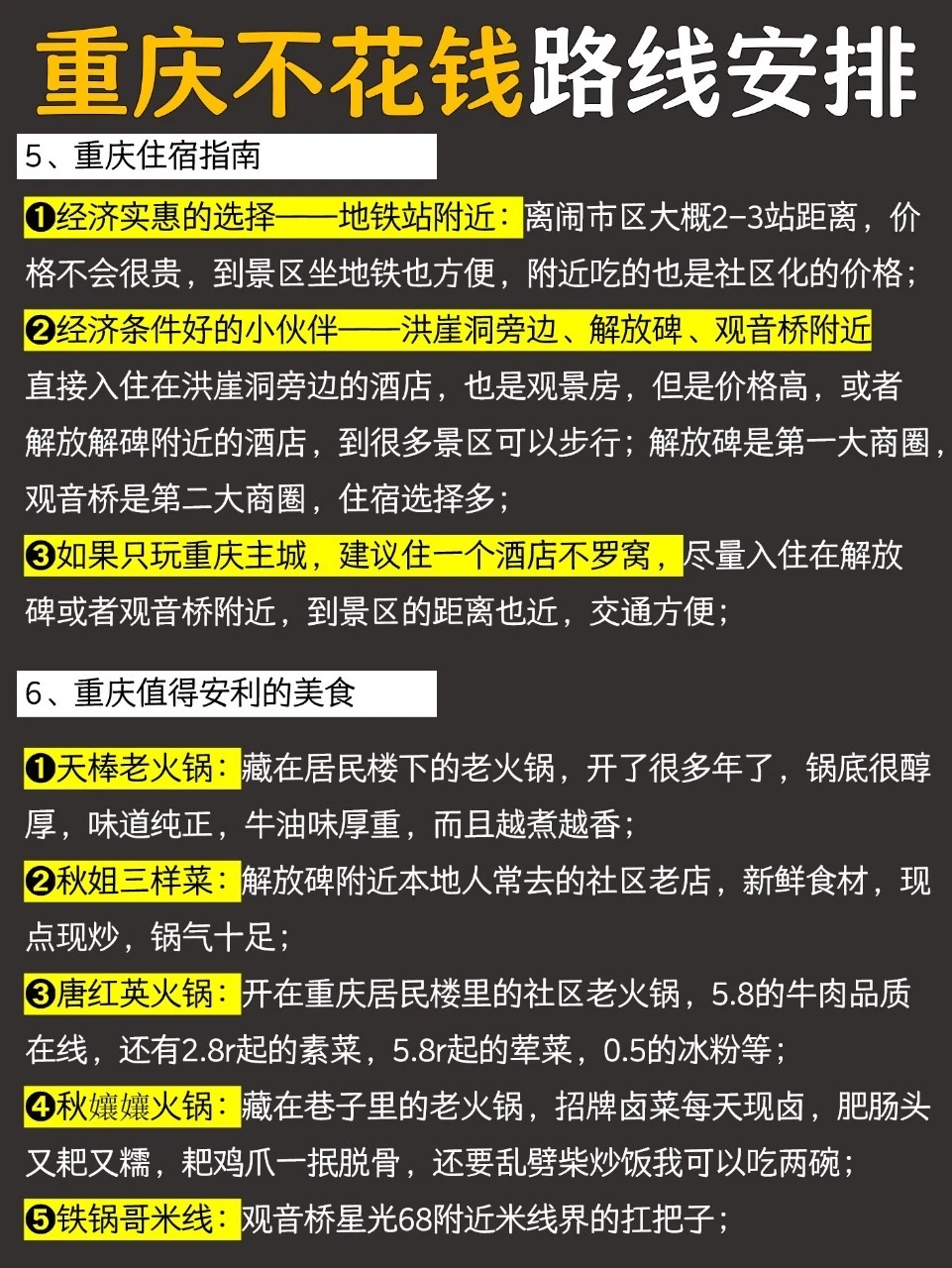 图6️⃣重庆住宿指南&美食