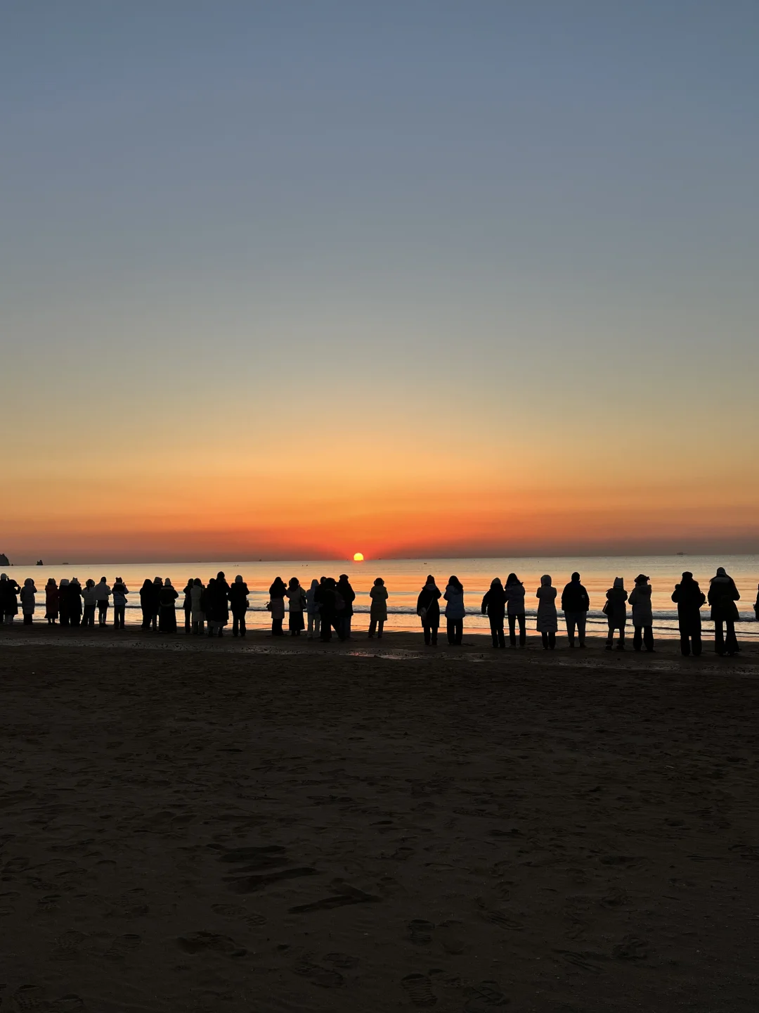一个人旅行的高光时刻 真的会记很久很久 凌晨零下 迎着冬季呼啸的大风 漆黑地循着路灯 奔赴一场盛大日出 下车的那一刻已经被美到没有任何形容词了 看过不少的日出 但这样长的海岸线 是第一次 在日出面前 人变成小小的蚂蚁 变成世界的沙砾 那一刻 我们好渺小 世界好大 活着值得