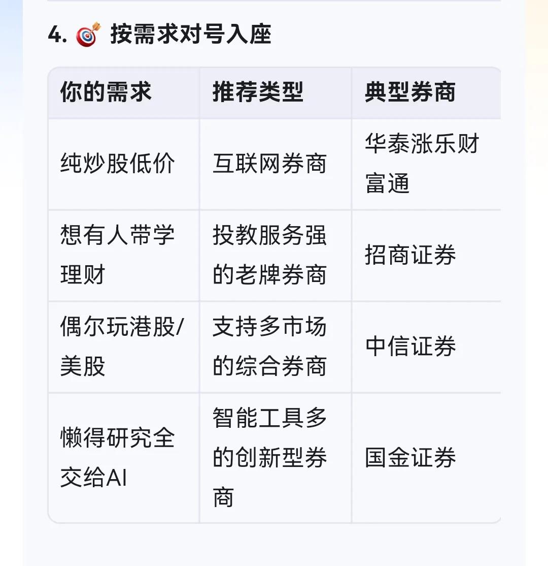 新手开户,如何选券商?(终极简化版) 选择券商时,优先考虑大券商、低佣金、APP流畅且正规安全。新手开户后可按需求更换券商,避免被“免费开户送礼物”等套路。结合自身需求,选择适合的券商组合,确保交易体验和资金安全。
