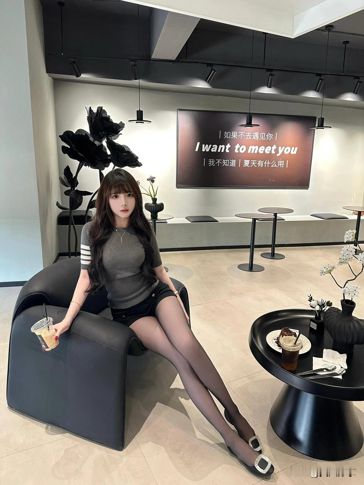 性感黑丝美人执饮品,于室内展优雅姿态,每一帧皆为魅力定格[爱慕][爱慕]