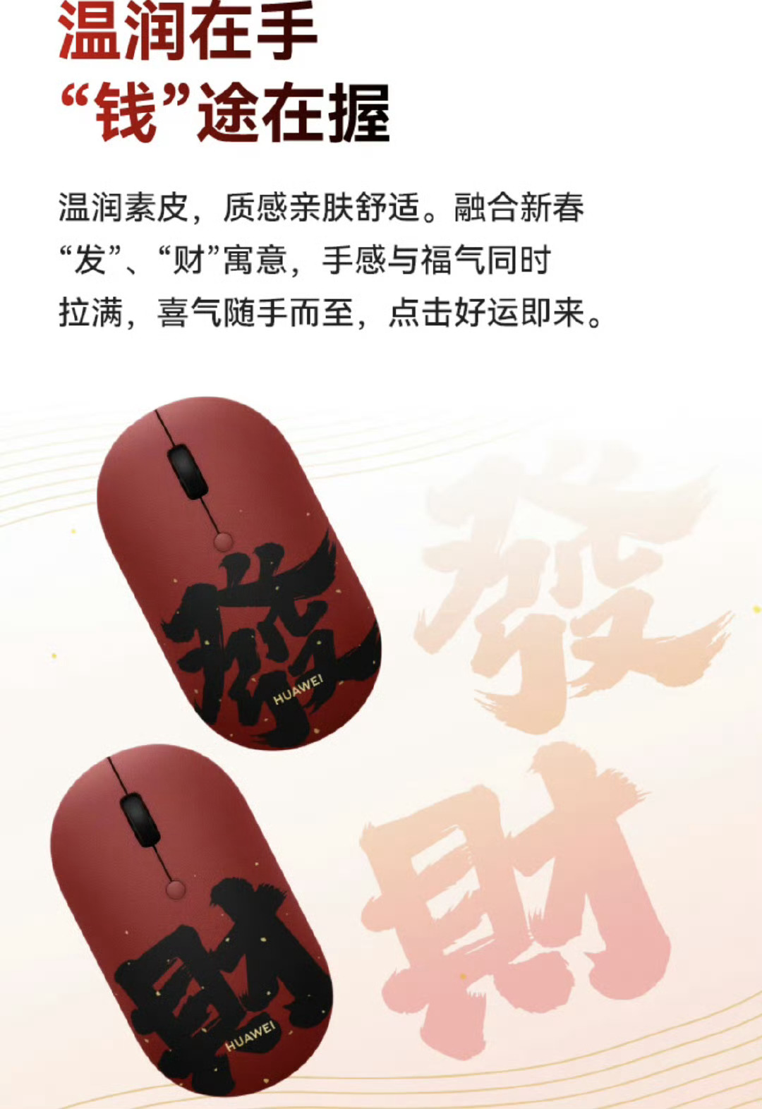 华为商城上线了一款鼠标华为无线鼠标Slim素皮版,很有春节氛围哦有需要的可以留意