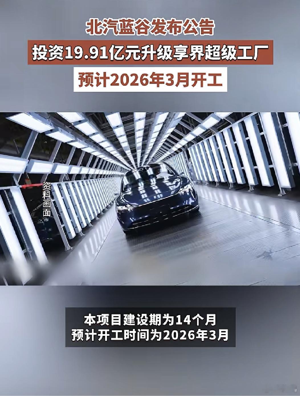 北汽花费近20亿,用于享界超级工厂高端平台车型产业化及产线数智化提升项目。