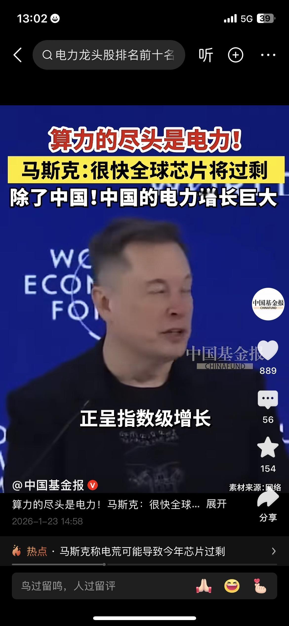 马斯克放狠话:全球芯片很快全面过剩,唯独中国例外! 直言中国算力需求爆发式增长,芯片缺口只会越来越大,算力缺电反而成了中国的独特优势!这话一出,半导体圈直接炸锅!你觉得中国芯片产业能抓住这波独家机会吗? 马斯克 芯片产业 科技财经 算力 市场有风险,投资需谨慎