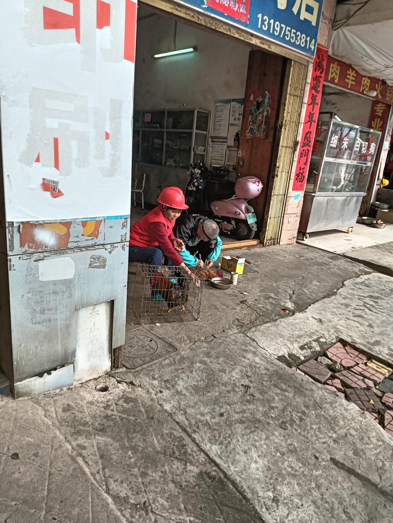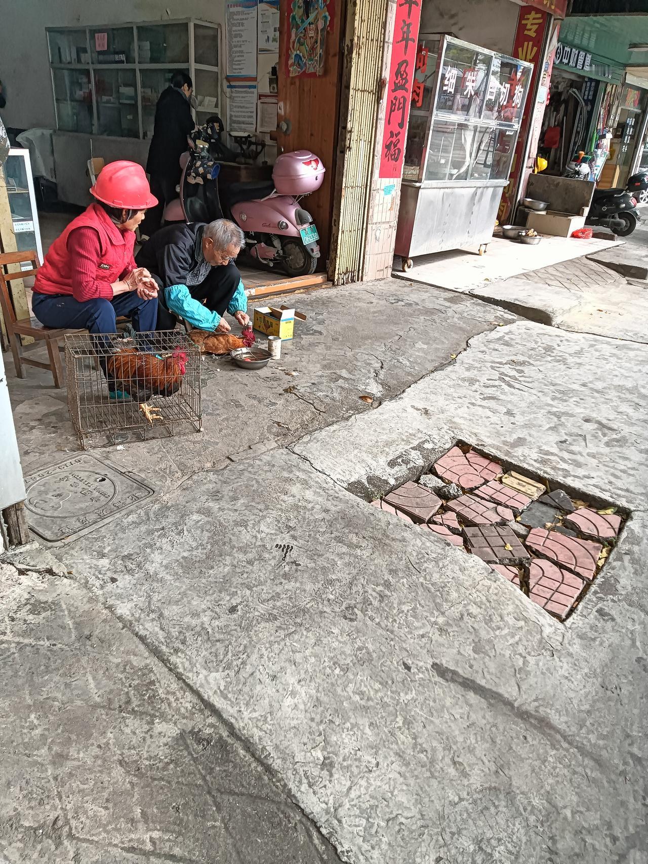中午经过贵港市港北区江北大道附近见一老者在阉鸡,又记起小时候在农村家里经常有阉鸡佬甩大嗓门叫阉鸡。这种土老的阉鸡方法也是讲究技术的,阉的好的公鸡长膘长肉养久点就成老水阉鸡。阉鸡是两广自切鸡必备食材价格也不低,特别是家庭散养久点的老水阉鸡肉质香又有嚼劲。现场见此老师傅手脚纯熟快捷,整笼的小公 鸡经过一番操作即变成一笼阉鸡了。
