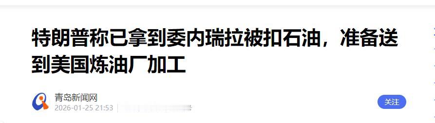 “我们拿到了这些石油。”——一句话,像极了西部片里强盗得手后的嚣张宣言。2026年1月25日,美国现任总统特朗普在白宫记者会上高调宣布:美国已完成对7艘委内瑞拉油轮的“技术处理”,石油成功卸载,现正分批运往休斯敦等地的炼油厂进行加工。 特朗普的这番操作在全球舞台上犹如一记重锤,震得各方反应不一。支持者欢呼“美国再次伟大”,批评者则直指其赤裸裸的资源掠夺。 据《华尔街日报》报道,美国已通过出售部分扣押原油获利5亿美元,特朗普还放话称,计划将总计5000万桶委内瑞拉原油推向市场。从扣押船只,到卸货运输,再到炼油销售,美国政府牢牢掌控了整个链条,委内瑞拉在这个过程中毫无话语权。 当然,美国政府也懂得“包装”。特朗普在发言中强调,这笔钱将“用于帮助委内瑞拉人民”,但调查发现,这笔资金全程由美国财政部控制,并未经过任何委内瑞拉政府或国际组织的监管。也就是说,这场所谓“惠及两国”的交易,实际上是一场单方面的资源清洗。 西班牙首相佩德罗·桑切斯公开表示,这种做法“在全球法治体系中开了一个极其危险的先例”。法国外交部长斯特凡·塞茹尔则称,美国此举“严重违背国际法原则,是对主权国家最粗暴的干涉”。就连一贯与美保持密切关系的英国,也未对这一行动表示支持,可见美国在道义上正日益陷入孤立。 美国频繁以国内法律为依据,对外实施资源“接管”,已引发广泛关注和质疑。多位国际法专家认为,这种操作严重违反《联合国宪章》和《国际海事法》,等同于将“谁拳头硬谁有理”的逻辑写进了外交行动手册。 从纽约到洛杉矶,上百个城市爆发游行,抗议政府在全球掠夺资源,却无视国内民生困境。根据皮尤研究中心2026年1月的最新民调,超过六成美国民众不认可政府当前的外交举措,尤其反感以“国家安全”为名的海外资源干预。 企业界的态度更为冷淡。特朗普曾试图拉拢埃克森美孚、雪佛龙等能源巨头入局,承诺“优先分配委内瑞拉油田重建项目”,但大型油企普遍保持观望。行业报告显示,要恢复委内瑞拉石油产能至少需要上千亿美元,相当于美国头部能源公司一整年的全球投资预算,风险与投入严重不对等。 其实,这并非美国第一次“截油变现”。早在2020年代初,美国就曾在制裁委内瑞拉的背景下,扣押运送燃油的油轮,并将112万桶原油变卖,获利4000万美元。 对伊朗,美国司法部也曾多次以“违反制裁”为由扣押油轮,包括一批在阿联酋海域抓获的油船,最终在休斯敦拍卖换得上亿美元收益。伊朗当时的外交部毫不客气地称之为“现代海盗行径”。 相似的剧本,不同的对象,变化的只是理由。今天是“反恐”,明天是“制裁”,反正帽子自己戴、法自己写、油自己卖。这种模式的核心逻辑,就是让美国国内法在全球“出海”,变成一种超国家的行动依据。而这种“合法掠夺”,正是当下全球秩序面临最大挑战之一。 当前美国通胀压力仍在,财政赤字高企,特朗普急需通过快速变现海外资源来缓解内部压力,为11月的大选积累“政绩”。变卖委内瑞拉石油,不仅能拿回现金流,还能对选民宣称“我们掌控了全球能源”。 从经济角度来看,美国对能源价格的控制力日益下降,中东、俄罗斯、非洲等地区的能源走向更为复杂,控制委内瑞拉这个全球最大原油储量国的资源,就成了特朗普政府的战略抓手。特朗普曾公开表示,希望让美企“接管”委内瑞拉油田,甚至妄言要让美国控制“全球过半石油产量”。 然而,再好的算盘也难逃现实的反噬。短期内,美国或许能从这批石油中获取部分收益,特朗普也能借此在选民面前刷一波存在感。但这种行动正在严重损害美国的国际信誉。越来越多国家已对“美国优先”的逻辑感到疲惫,甚至开始寻求替代机制来规避美元与美国法律的影响。 企业的观望、盟友的沉默、民众的抗议,都是信号。美国的“法外之地”操作正被世界逐步识破,而这种赤裸裸的掠夺行为,只会让美国在多极化的世界中愈发孤立。 特朗普: 美国已从七艘扣押油轮上接收了原本属于委内瑞拉的石油——九派新闻1月25日