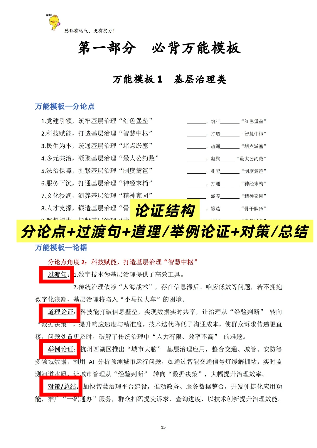 ✅开头、分论点、过渡句、道理论证、举例论证、对策、总结、结尾,都在其中,非常全面,基本能覆盖各个申论热点,但是如果对于备考时间太紧张的同学,其中的3个重点备考话题,一定放在首位。