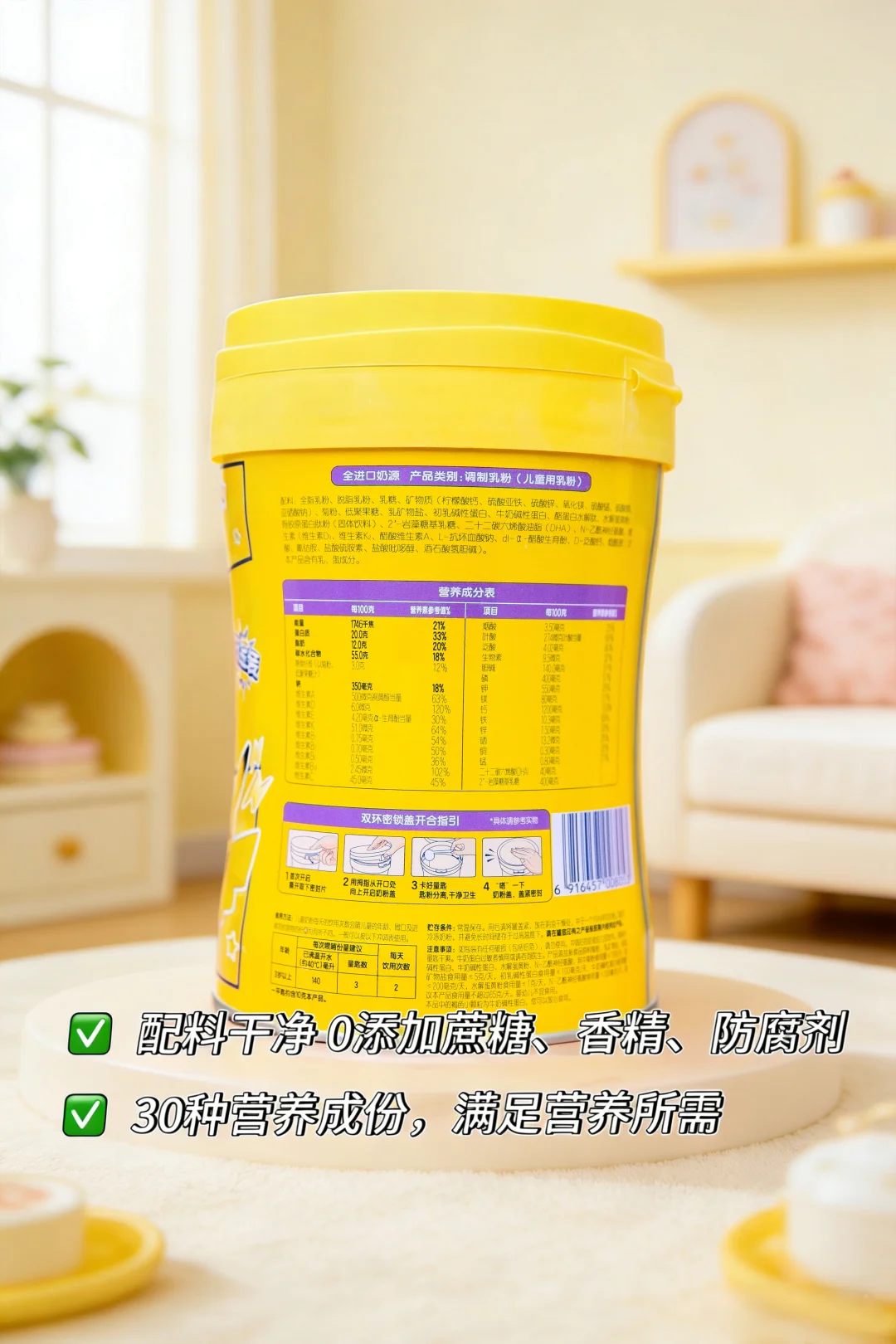 [拔草R]最打动我的是它的纯净配方,没有额外添加蔗糖和香精,100%新西兰进口草饲奶源🐄,冲泡后是自然的奶香味,孩子爱喝,也不用担心里程碑健康。[种草R]里面还加了HMO母乳低聚糖,能帮孩子呵护肠道状态,DHA和燕窝酸也没落下,助力大🧠发育,30多种营养素一站式补齐,不用额外搭配其他补剂,省了不少心。
