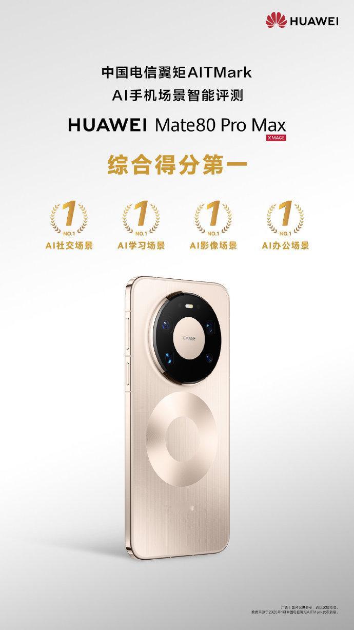 在中国电信翼矩AITMark AI手机场景智能评测中,华为Mate 80Pro Max斩获四大场景第一名;在AI助手智能体评测中,小艺智能体排名第一!