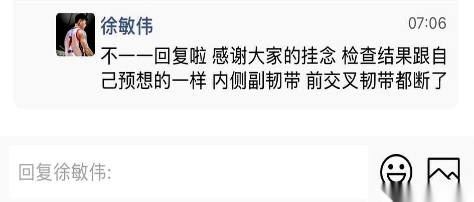 浙江那个火爆的草根篮球赛,丽水队徐敏伟的伤情报告出来了。 前交叉韧带,断了。内侧