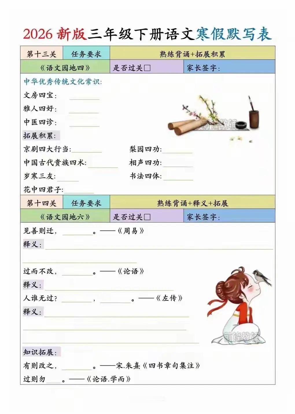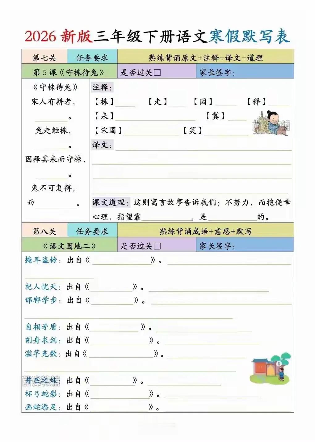 二年级语文下册必背内容闯关表真的很实用。它涵盖好多重要内容,像《村居》《咏柳》这