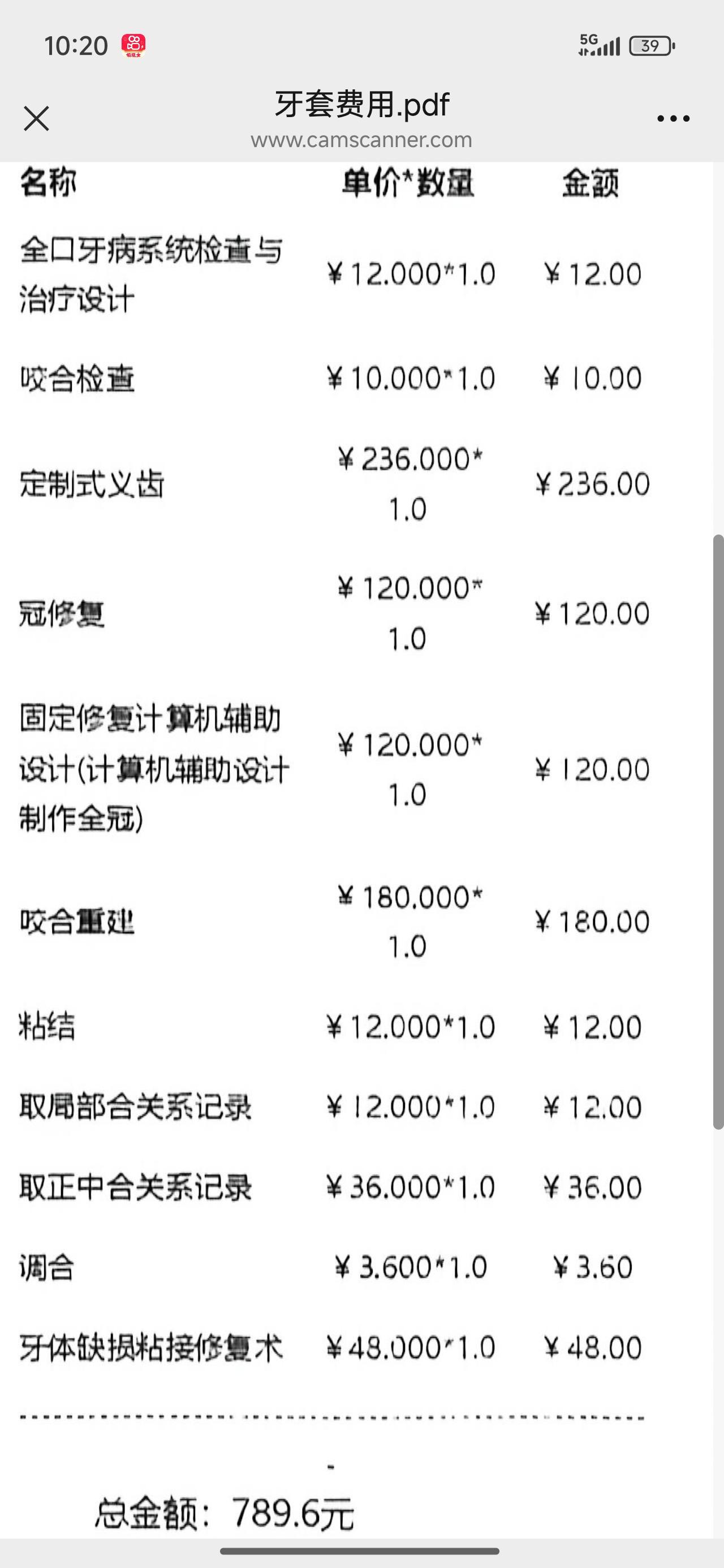 今天这个牙套做完,这一轮关于牙齿一系列的问题处理算是暂时告一段落。本来我是要求做个全瓷的,医生说这个位置的牙根本没必要,最终听取了她的建议,选择了这个纯钛的牙套。 医生给我的理由如下: 1、这个位置的牙社交距离根本看不见,不存在是否美观的问题。 2、同等厚度的牙套,纯钛的比全瓷的强度要高,基础牙冠可以少磨掉一部分。 3、特殊情况下比如医院核磁共振检查也不受影响,检查时不用取下来。 4、最关键的一点,它相对还比较便宜,这次做个钛质牙套一共花了700多元,如果选择全瓷的,稍微好一点的国产牙套也要一千大几。 刚装上去还是有点不适,总觉得装高了,医生说至少要有个2周左右的适应时间,到底好不好,还是需要时间来检验。