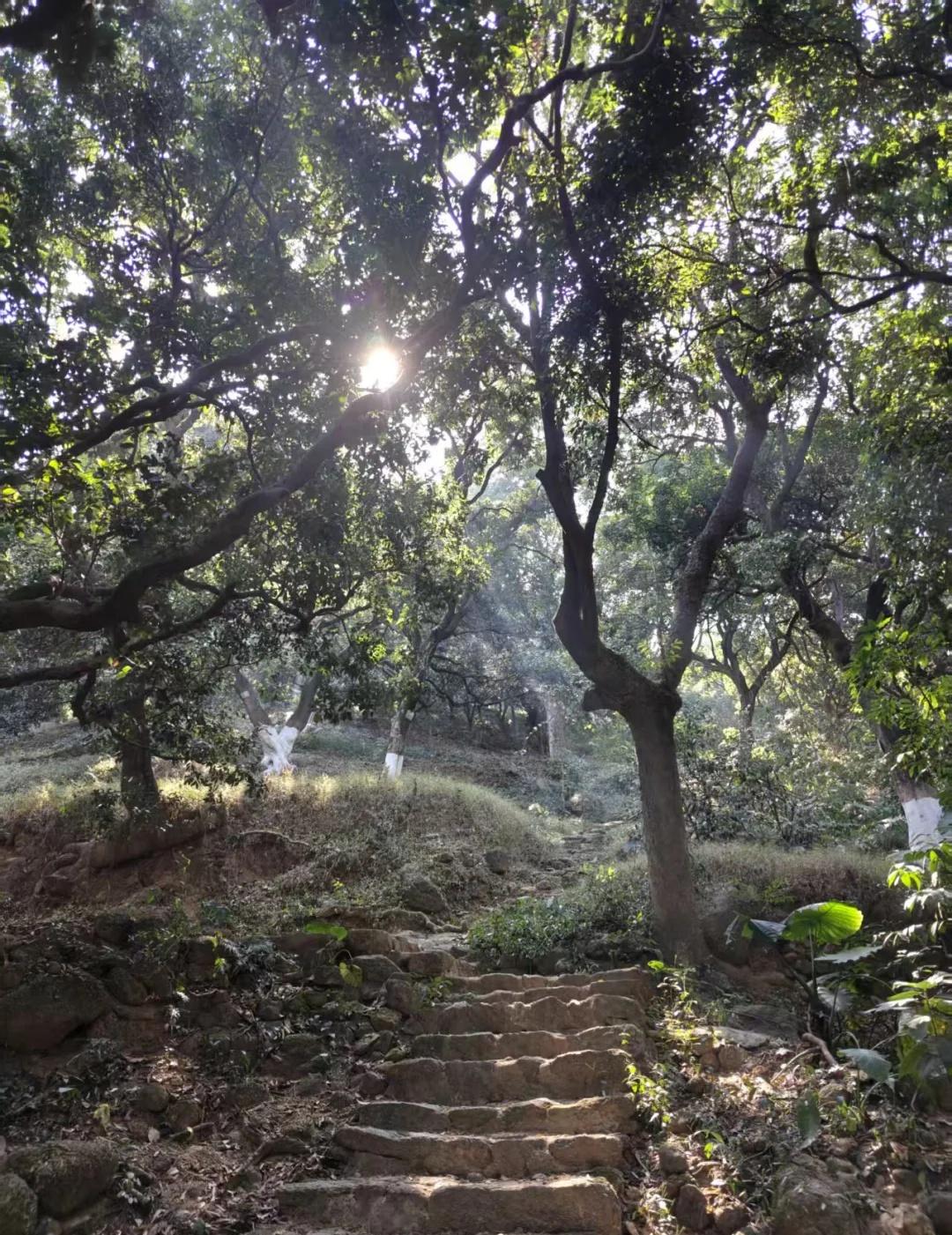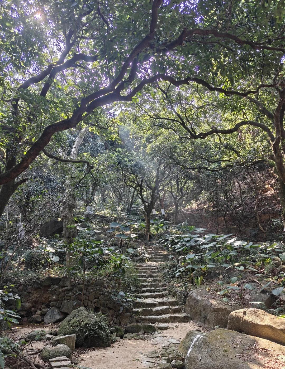 黄埔贤江公园小环线 难度[心]推荐指数[玫瑰][玫瑰][玫瑰] 🚗【交通指引】 🚘自驾:(首选)导航「贤江公园北门」,停车场就在北门旁,免费停车,路边随便停,人少 🚇公共交通:21号线「长平站B1口」出,转黄埔有轨电车1号线到「贤江公园站」,步行10分钟直达北门 ❌ 避坑提醒:千万别走东门!不好停车 🎫【门票信息】:免费🆓,晚上不开门 👣徒步路线推荐🏞️ 小环线:北门→观荔古道→尚书怀亭→半山观景台→东门→贤江村→北门 • 全程时长:约 1.5 小时 • 路线特点:北门至观景台全为爬山路线,道路比较原始,有青苔,不适合下雨☔️☔️行走,容易摔,全程树荫覆盖,进入森林的感觉,晴天光影效果俱佳,适合4岁以上小朋友,不能推车;观景台至东门为下山石板路,景色一般,整天线路前难后易,适合亲子游行!城市轻徒步