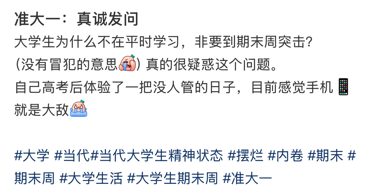 准大一真诚发问:为啥大学生非要到期末周才突击?校园共创计划校园微盘点