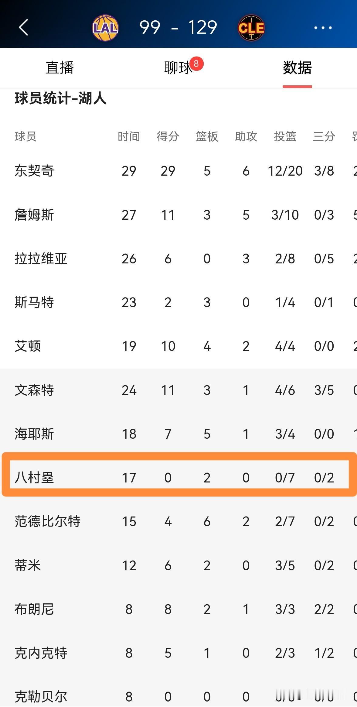 湖人最应该交易的球员就是八村塁!在今天湖人客场以99:129惨败于骑士的比赛中,八村塁的表现真是惨不忍睹。全场比赛下来,八村塁替补出战17分钟,投篮7中0怒砍0分,他的场上正负值为-17。 坦白说,如今八村塁的进攻状态非常的不稳定,他已经很难承担起湖人外线火力的重任,因此湖人应该趁早将八村塁交易走才是上策。