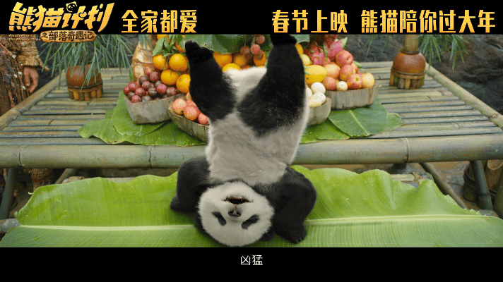 这电影的特点之一,是拍出了熊猫最生动的一面。片中的熊猫在山林间奔跑打闹充满野性活力,安静下来又憨态可掬,这种“猛”与“萌”的结合非常吸引人。通过它与原始部落共处的奇妙故事,电影像一部为你我打造的“熊猫合家欢”,让我们在影院就能沉浸式体验高能量熊猫的一天,和隔着围栏看真熊猫比,又是一种不同的奇特体验。独家解锁高能量熊猫的一天原始部落的人也爱吸熊猫