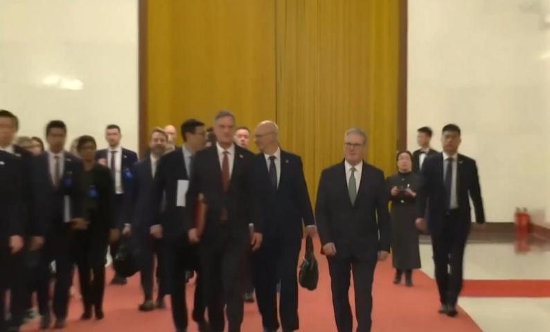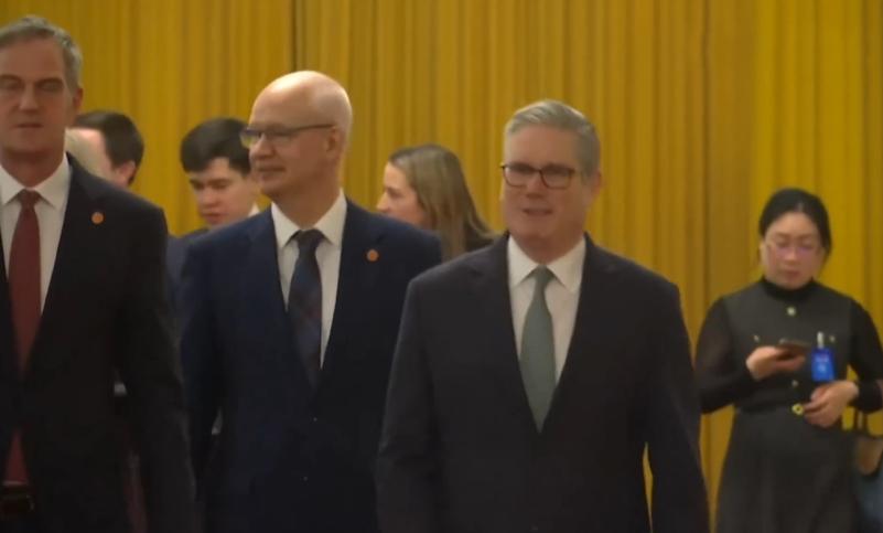 1月29日!英国首相斯塔默抵达人民大会堂参加会议! 从曝光的画面我们可以看出,当天英国首相斯塔默穿一身西装,梳着精致的发型非常稳重有绅士。 值得一提的是,英国首相来参加会议的时候站在最把边的位置,而走在中间的那位身材非常高,还昂首挺胸很有气场,不知道这位是什么身份,按理说英国首相斯塔默才是主角,应该走在队伍的正中间,没想到的是斯塔默非常随意,走在最把边的位置,看起来他像辅助人员。 据悉,这也是英国首相抵达北京的第二天,昨天晚上的时候斯塔默就参加了一个商务会议,还现身三里屯吃云南菜。