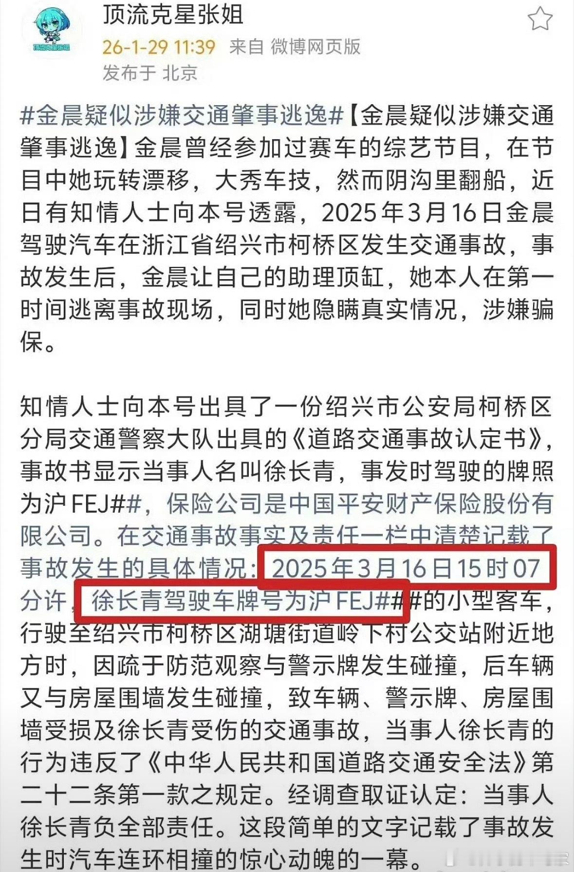 这年头反转太多了,蹲个后续,冷知识,肇事逃逸最高可罚2000元,拘留15天,指示顶包最高判7年曝金晨肇事逃逸