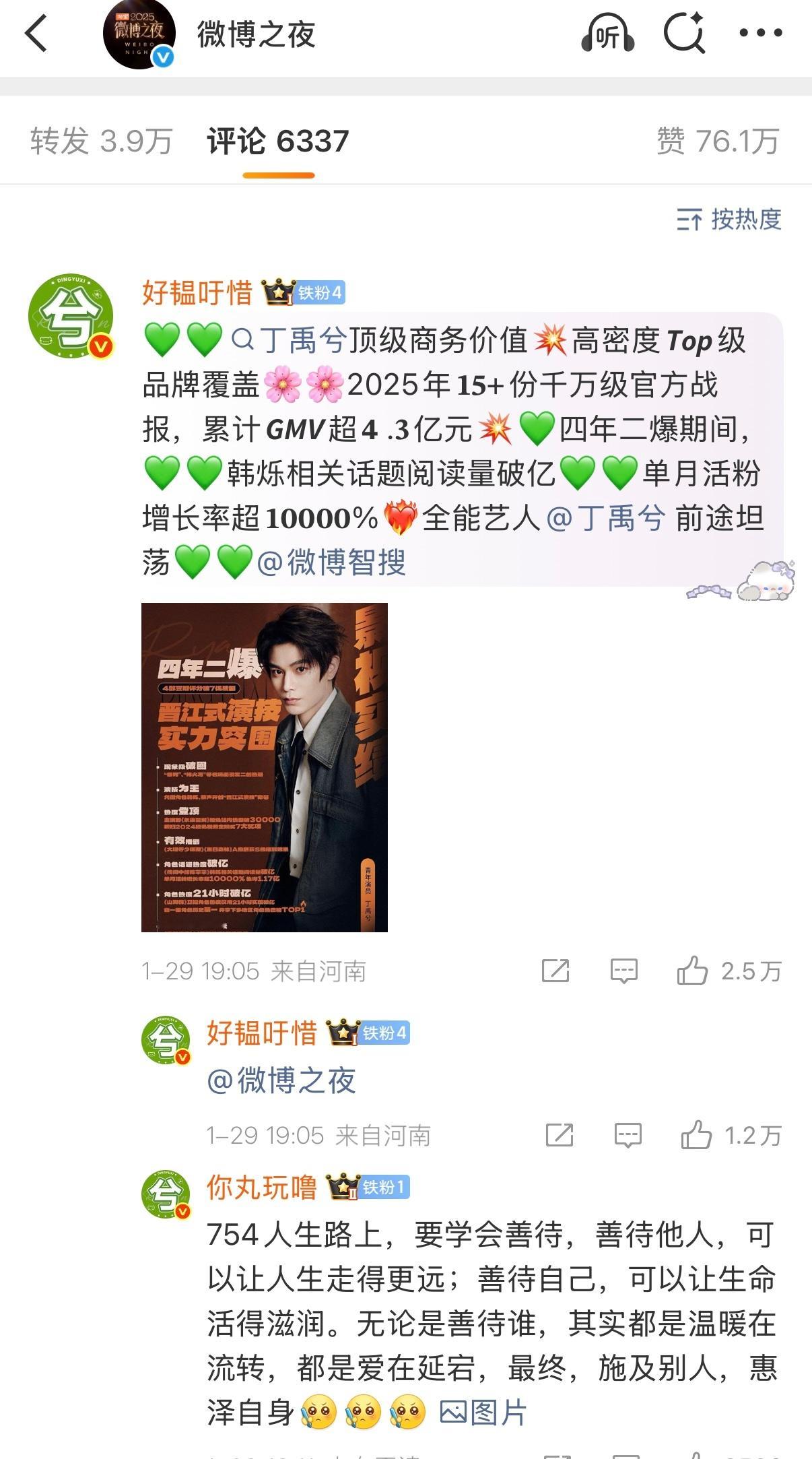 微博之夜今日官宣微博,丁禹兮粉丝拿下前4了,把一些人气的在豆瓣跳脚开黑帖,看看这个楼中楼的点赞量就知道这是活人点出来的啊
