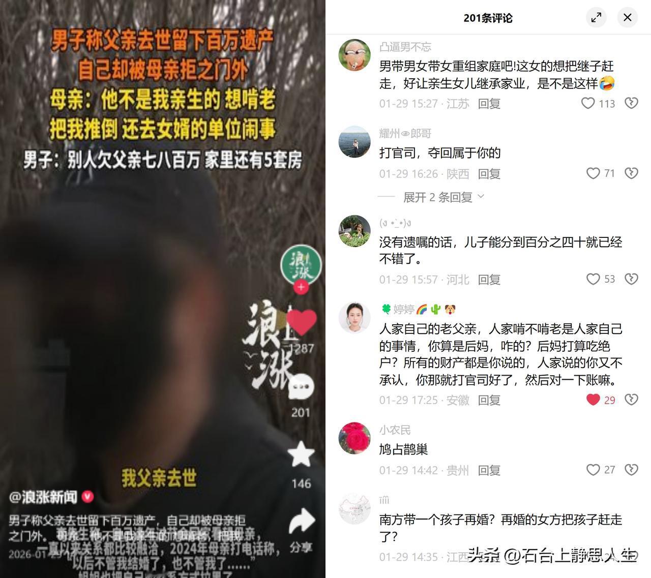 700万外欠款+5套房产,继子被拒门外。 河南鹤壁这起遗产纠纷,表面看是母子反目,背后却是重组家庭隐形矛盾的彻底爆发。父亲去世留下不菲身家,继子想依法分一杯羹,却被继母以非亲生、推倒我、啃老为由拒之门外,双方各执一词,舆论几乎一边倒站在了弱势的继子这边。 这事儿看着荒唐,本质上往往是重组家庭的继承潜规则在作祟。不少人默认继子女是外人,习惯用非亲生、品德差这类道德标签,试图绕开法定继承的硬逻辑。但法律摆得明明白白:非亲生不影响继承权,单次推搡、家庭纠纷式的闹事,根本达不到丧失继承权的法定门槛。说白了,这就是想用道德指责模糊法律边界,把继子女从继承序列里挤出去。 说到底,争遗产争的不光是钱,更是一份自己人的身份认同。