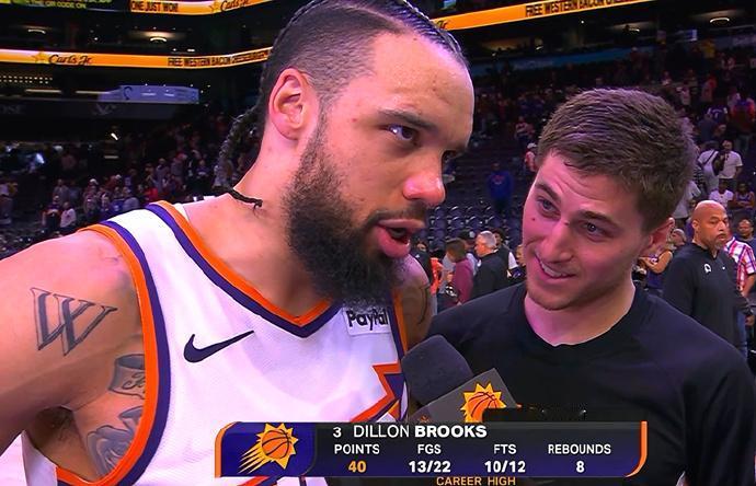 爆砍40分!请给龙哥尊重! 在没有布克的情况下,狄龙率领太阳击败东部第一的活塞,狄龙个人22投13中,三分7中4,罚球12中10,拿到40分8篮板4助攻1抢断1盖帽,仅1次失误,正负值+14。 龙哥本赛季来到太阳之后,是真的飞龙在天、攻防一体了。他的投射和突破后近框抛投都非常有谱,且在防守端,龙哥基本上从1防到3没有任何问题,碰着瘦弱一些的4号位,龙哥也能换防过去顶个几分钟。 比得分、防守更重要的,是狄龙带给太阳队气质的改变。 狄龙只要在场,队友就感觉永远不会沮丧和崩盘,他都是猛冲猛打,情绪长久的保持啊高昂,尤其是对面有詹姆斯、杜兰特、库里、哈登这种巨星的时候,狄龙就能化身龙哥,全场追着防,如果能把对手逼到急眼了,那龙哥就获得了局部胜利。 这样的球员,对手都不太喜欢,但队友爱的要死。