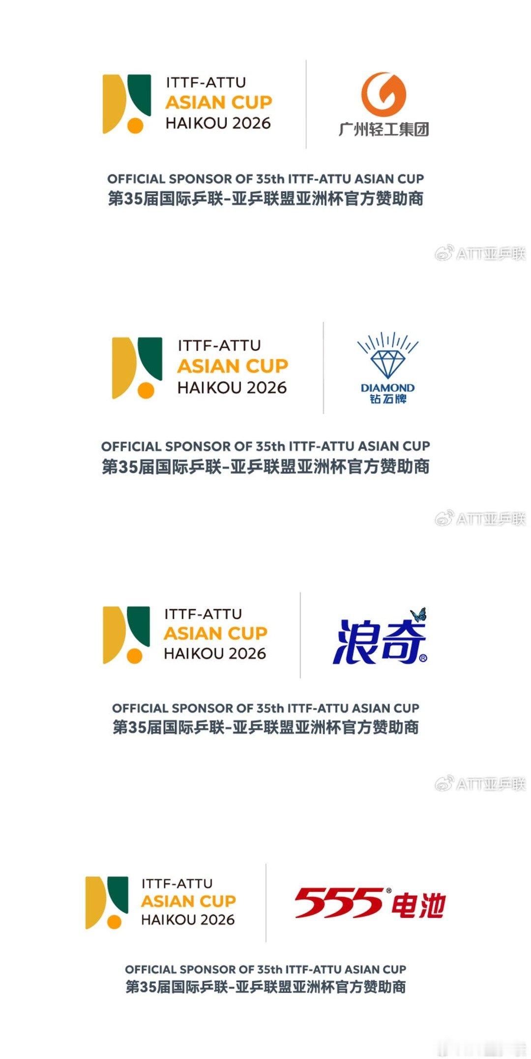2026海口亚洲杯·赞助商两个海南企业:中国移动海南分公司 椰树四个广州企业:广州轻工 浪奇 钻石牌 555电池