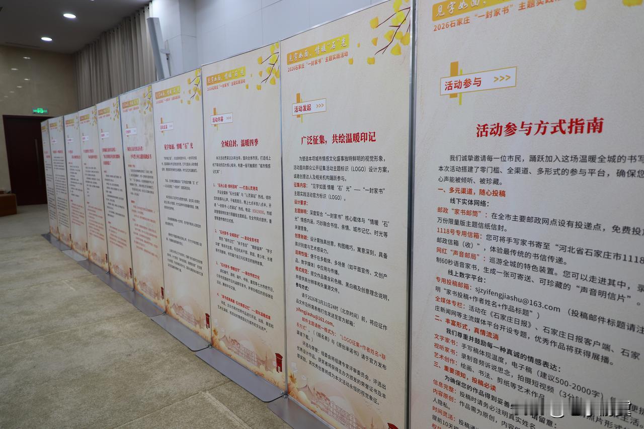 【家书连四海 情系石家庄 “见字如面 情暖‘石’光”——“一封家书”主题实践活动即将启动】从1月30日举行的媒体通气会上获悉,由石家庄市委宣传部、市委网信办、市直机关工委等18家单位联合主办,石家庄日报社、石家庄广播电视台承办的“见字如面 情暖‘石’光”——“一封家书”主题实践活动将于2月10日在我市全面启动。 该活动贯穿2026年全年,“以笔墨传情 情系石家庄”为核心脉络,面向全体石家庄市民、外地的石家庄籍人士及关心石家庄城市发展的外地朋友展开。通过倾听回响板块,设立线上线下投稿平台和心灵倾诉热线;通过全城驿动板块,发动不同群体撰写家书;通过情暖佳节板块,将书写家书与“我们的节日”同频共振;通过成果典藏板块,集中展示活动成效,全面打造属于石家庄的“城市情感记忆”。 活动将筛选优秀家书作品汇编成册,打造城市文化名片;举办家书主题展览,集中展示亲子家书、视频家书、感恩作品等;开展“笔尖上的乡情”硬笔书法比赛,弘扬汉字文化;举办诵读盛典,让文字的力量通过声音直抵人心,将流动的情感固化为可传承的城市文化成果。 该项活动将致力于打造一个零门槛、全渠道、多形式的参与平台,让每一位参与者都能找到适合的方式,在创新开展现代视听家书、创意艺术家书,多元化投稿形式的同时,大力倡导和鼓励书写文字家书,让真诚的情感在字里行间流淌。 投稿渠道如下: 1、线下实体投递:全市主要邮政营业厅将设置家书投递邮寄点,设置1118号邮政专用信箱;设置特色流动站点——“声音邮局”,通过“声音邮局”录制语音家书,生成带有二维码的“声音明信片”。 2、开设全媒体投稿邮箱:sjzyifengjiashu@163.com,可通过文字、图片、音频、视频等格式投稿。 3、石家庄日报、燕赵晚报、燕赵老年报等传统纸媒和主流新媒体平台开设“一封家书”专题专栏,对优秀作品进行刊发和展播。 另外,依托石家庄广播电台开设“一封家书·心灵驿站”85819090热线,每周日晚7点半到8点半邀请咨询师、情感专家及专业志愿者,接听群众来电。 家书传情,纸短情长。诚挚欢迎广大市民朋友积极行动起来,用笔墨书写城市故事,记录百姓心声,把对家人的牵挂、对城市的热爱、对生活的感悟诉诸笔端、化作言语。让我们主动参与、踊跃投稿,用一封封家书传递温暖、凝聚力量,为城市发展注入源源不断的温情与动力!