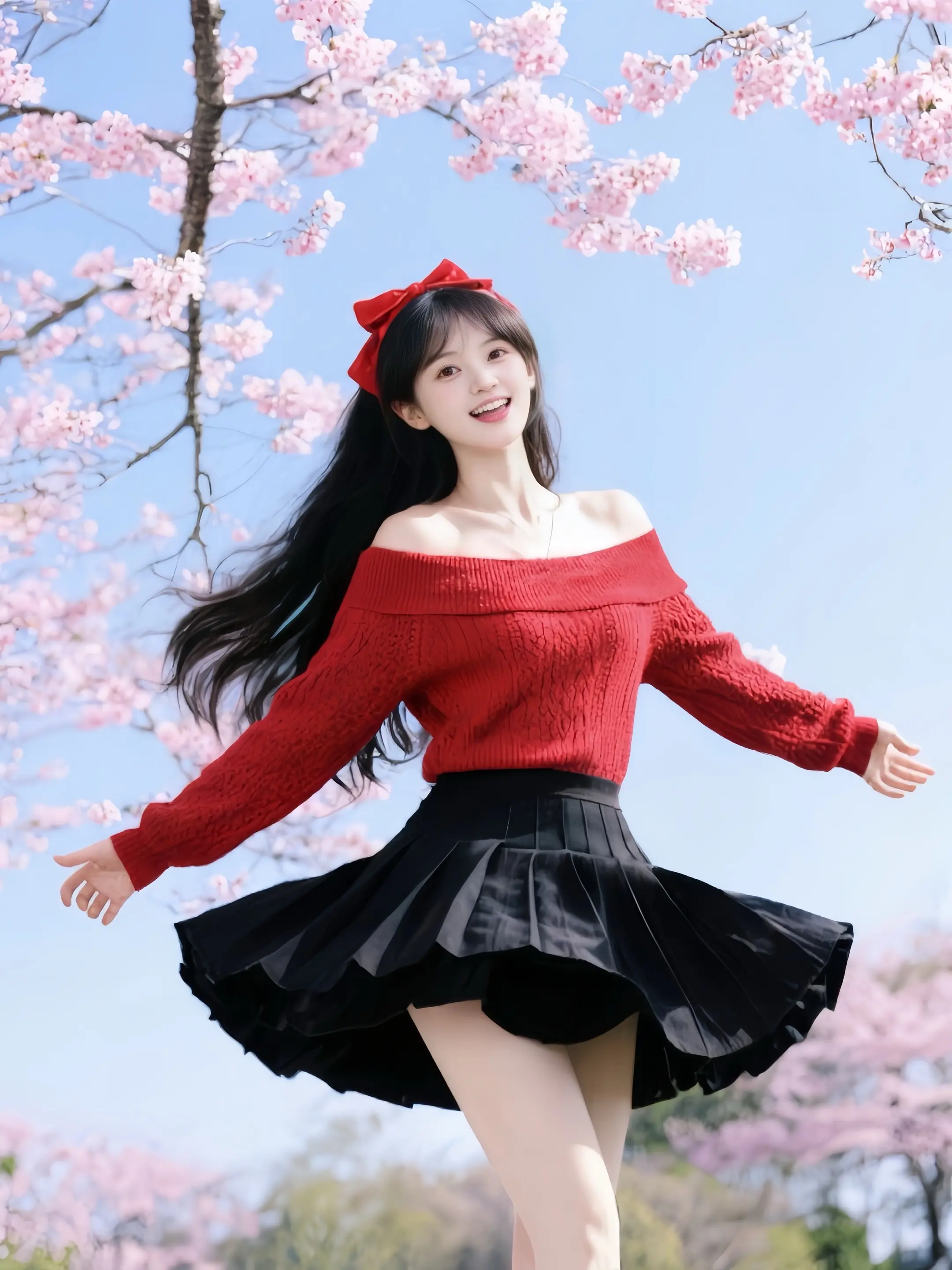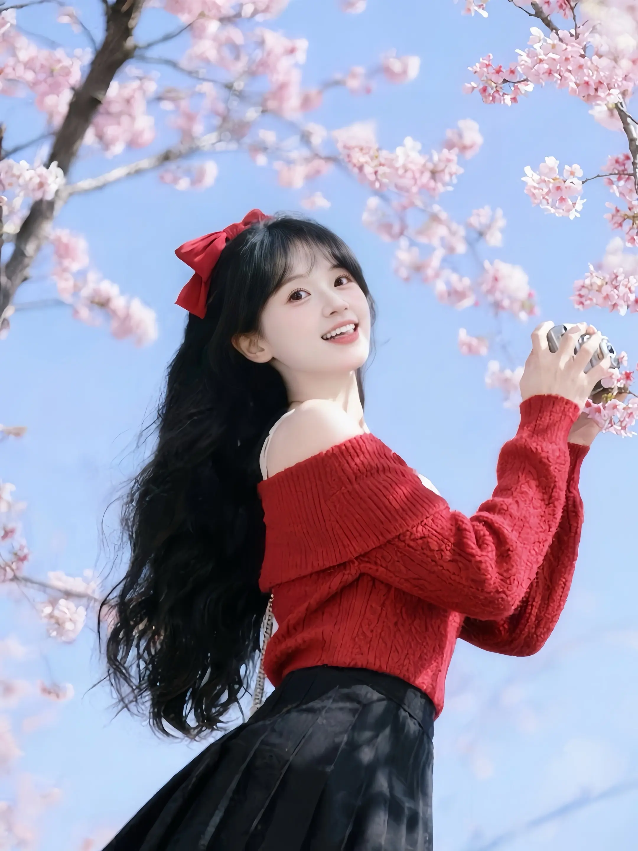赏樱花女生拍照姿势少女写真早樱