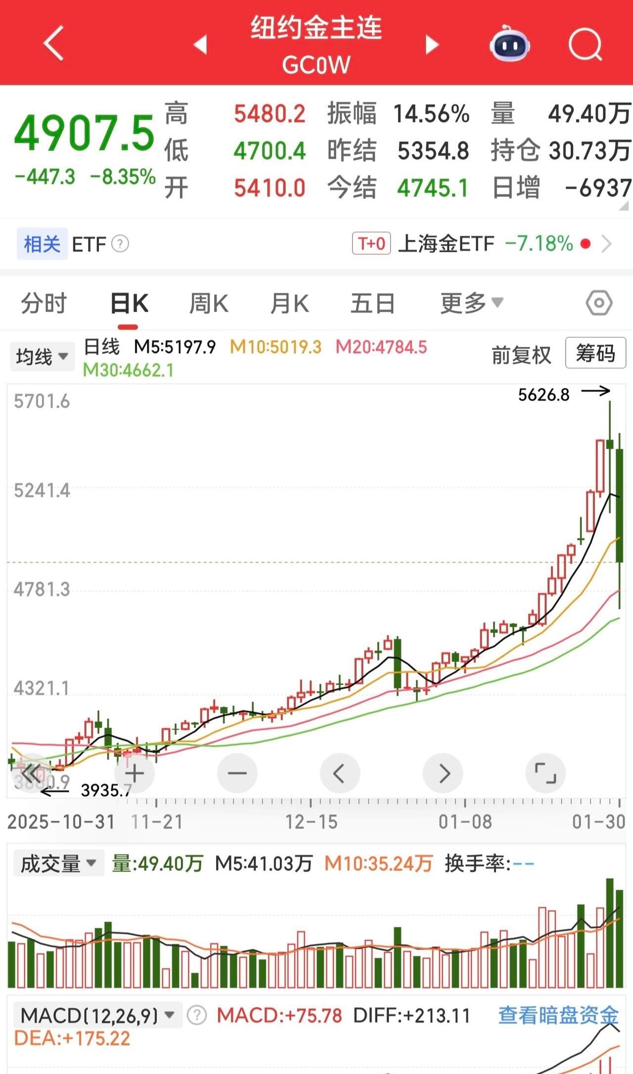 昨晚金银全部创近几十年来最大的跌幅,黄金价格直接一度跌到了4700,白银更是一度跌到了74。这两根大阴棒,可以说无情地击杀了多头信仰。