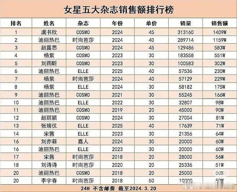 来看看刘浩存最后的杂志成绩如何?刘浩存24h嘉人销量18160+本首开不运回,仅十天,秒切1.1w什么水平?