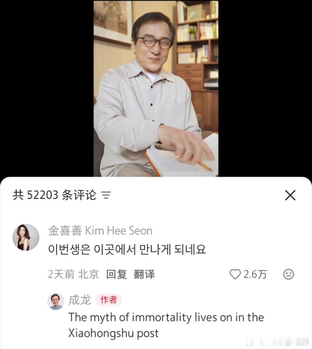 “万世沧桑唯有爱是永远的神话”成龙回复金喜善跨年电影愿