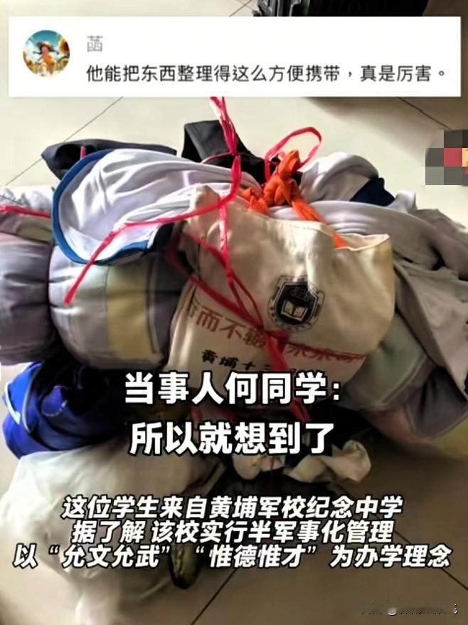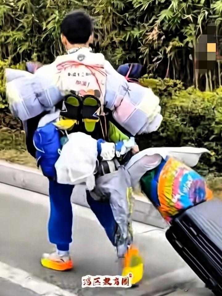 广州初中生独自背行李坐地铁,之所以迅速冲上热搜,核心不在于大家的猎奇心,而是在于大家对男孩能力的认同,以及对他性格的欣赏。 事情是这么回事,1月30号,是广州某些中小学寒假的首放日。 小何同学,他是广州黄埔军校纪念中学的一名住校初二学生。 放寒假的那天,本来家里人是提出开车到学校里接他。 但是被他拒绝了,他说自己能够搞定回家。 从视频中看到,其实那天他要带的东西还是比较多。 他那个小行李箱里面已经被塞得鼓鼓的,行李箱上还挂着一个枕芯。 他背着一个大背包,由棉被、蚊帐,换穿的运动鞋,拖鞋,校服,还有部分书籍捆扎而成。 有人好奇追问,为啥不用行李袋装这些东西? 小何笑着解释,其实他早就从家里带了行李袋。 可袋子太大,把棉被蚊帐装进去后,又沉又不好提,走两步就晃悠,特别费劲。 于是,他灵机一动,想到个好法子:不如用绳子把这些东西捆起来背在身上,这样比手提省力多了! 打包的时候,一个人搞不定,小何还拉上了室友一起帮忙。 两个少年蹲在宿舍里琢磨捆扎方法, 递绳子、理被褥、调整松紧,说说笑笑间, 不过20分钟就把这堆杂乱的物件,捆成了一个结实又规整的大背包。 收拾妥当,小何一手稳稳拖着行李箱,一手扶着背上的巨包, 脚步轻快地走出校门,独自去地铁站搭乘地铁,全程没喊一声累,没露一丝怯。 从这件小事里,小何身上的闪光点,藏都藏不住,越品越让人佩服。 首先最难得的,就是他刻在骨子里的独立意识。 明明有家人可以兜底,但是他偏要自己的事自己扛,不娇气、不依赖。 这份不把麻烦推给别人的自觉,远超同龄孩子的通透。 再看小何说的那句话,“和室友合力20分钟完成打包”,更是藏着满满的细节。 他能在需要帮忙时,找到愿意搭手的人,足以见得小何性格极好,待人真诚,在同学中人缘超棒。 而他懂得主动求助,也懂得与人协作,这份高情商,比单纯的独立更显珍贵。 更让人惊艳的是,他遇事不慌、善于思考的应变能力和动手能力。 当他发现行李袋不好用时,没有抱怨行李太多,也没有手足无措干着急,反而快速想对策。 更绝的是,他那打包的巧点子:他没有一通胡乱捆绑, 而是以书包为中心点,把所有物件围绕书包规整摆放, 再用绳子牢牢固定,直接借用书包的宽背带当肩带, 既结实又省力,妥妥的把身边资源用到极致。 大家看看,小何一个十几岁的学生, 就能把“发现问题—解决问题—优化方案”,想明白、做到位, 这份通透和机灵,是不是太难得? 小何,年轻的脑袋瓜子是不是就是特好使? 实在话,小何用自己的行动,给我们展现了一个少年最亮眼的模样: 不抱怨,不依赖,更是遇事不手足无措。 他拒绝家长接送是独立,他找室友帮忙是懂协作,捆扎行李时善于思考。 他的每一个举动,都透露超出年龄的沉稳和聪慧。 他的这些能力,从不是天赋,而是多次搞定琐事后得来的经验, 是遇事主动想办法,脑瓜子越用越灵活的回馈。 如今太多孩子习惯了,衣来伸手饭来张口;放学要家长接,行李要家长拎,遇事第一反应喊爸妈。 对比之下,小何的这份清醒、能干与担当,才格外让人动容。 独立立身的底气,动手成事的本领,自主思考的智慧。 这三种能力,无关成绩,无关家境,却是孩子成长路上最硬核的底气。 独立立心,动手立身,善思立行,少年有此三力,未来皆可期!