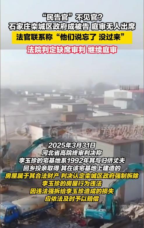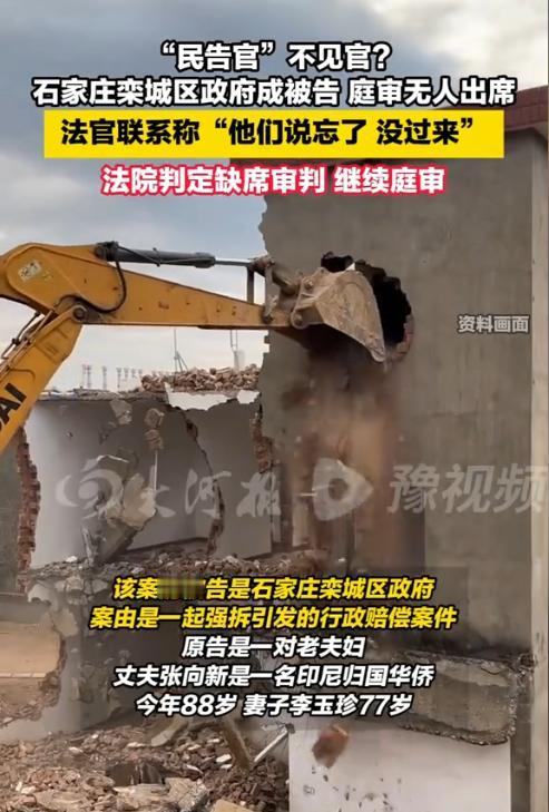 河北石家庄,一位8旬归国华侨的宅子遭到征地强拆后,怒将区 政府告上法院。法院虽然认定强拆行为违法,但区政 府只同意赔偿38万余元。老人再次将区 政府告上法院,要求增加赔偿金额,但这次区 政府直接不来了,还称是忘记了。(来源:大河报平顶山新闻) 据悉,张先生在即1992年,即54岁时,带着44岁的妻子李女士回到了国内发展。但是张先生和妻子并没有住处,所以只能投靠在亲戚家。 后来村委调查发现,李女士符合获批宅基地的条件,于是就帮李女士申请了一块宅基地,二人便在宅基地上盖了房子。 一直2023年,当地因为建设发展需要,要求征收李女士的宅基地及房子,但当时因为赔偿数额的问题没有谈妥,李女士和张先生都未同意。 万万没想到,当地区 政府竟安排拆迁人员对李女士的房子强行拆除,导致老夫妇俩没地方住了。 后李女士和张先生请来专业人士,将区 政府告上了法院,要求认定拆迁行为违法并赔偿损失。 2025年3月底,省高院终审认定李女士的宅基地获得程序合法,宅基地上的房子系李女士与张先生的合法财产,区 政府强行拆除的行为构成违法,故判决区 政府应当赔偿李女士夫妇的损失。 4个多月后,当地区政府赔偿了李女士38万余元。但李女士夫妇认为赔偿太少,于是将区 政府告上法院。 今年1月28日上午,张先生和李女士被家人搀扶着到了法院,他们对此案非常的重视,可没想到区 政府却把这事给忘了,没有安排人员出庭。 那区 政府未出庭,案件该怎么处理? 众所周知,在民事案件中,被告人未出庭并不影响继续庭审,反而是被告人失去了抗辩的理由。 《民事诉讼法》第147条规定,被告经传票传唤,无正当理由拒不到庭的,或者未经法庭许可中途退庭的,可以缺席判决。 其实在行政诉讼案件中,也是一样的道理。 《行政诉讼法》第58条规定,经人民法院传票传唤,被告无正当理由拒不到庭,或者未经法庭许可中途退庭的,可以缺席判决。 因此,区 政府即便不出庭,损失的是他们自己,对李女士夫妇来说并没有什么影响,法院还是会继续开庭。 值得注意的是,行政诉讼属于民告官,这与民告民的民事诉讼案件有一定区别,因为行政诉讼案件的被告人如果没有正当理由不出庭的话,是有很大麻烦的。 正当理由一般是指,因身体健康问题导致无法出庭或路途遥远、交通不便导致无法出庭或自然灾害等不可抗力导致无法出庭。 按照区 政府作出的回应,他们是忘记要应诉了这明显不符合正当理由的特征。 《行政诉讼法》第66条第2款规定,人民法院对被告经传票传唤无正当理由拒不到庭,可以将被告拒不到庭的情况予以公告,并可以向监察机关或者被告的上一级行政机关提出依法给予其主要负责人或者直接责任人员处分的司法建议。 因此,在行政诉讼案件中,被告无正当理由拒不出庭的,相关责任人员是会受到行政处分的。比如:警告、记过、记大过等。 李女士夫妇聘请的律师对此十分气愤,当庭提出要求相关部门对区 政府的相关负责人予以行政处分。 最后,区 政府为了发展需要对个别市民的房产进行拆迁,这的确没有问题,但不能用强制手段,补偿也一定要到位,要做到公平公正,不能滥用公权力,更不能藐视法律。 对此,您怎么看?欢迎留言交流。