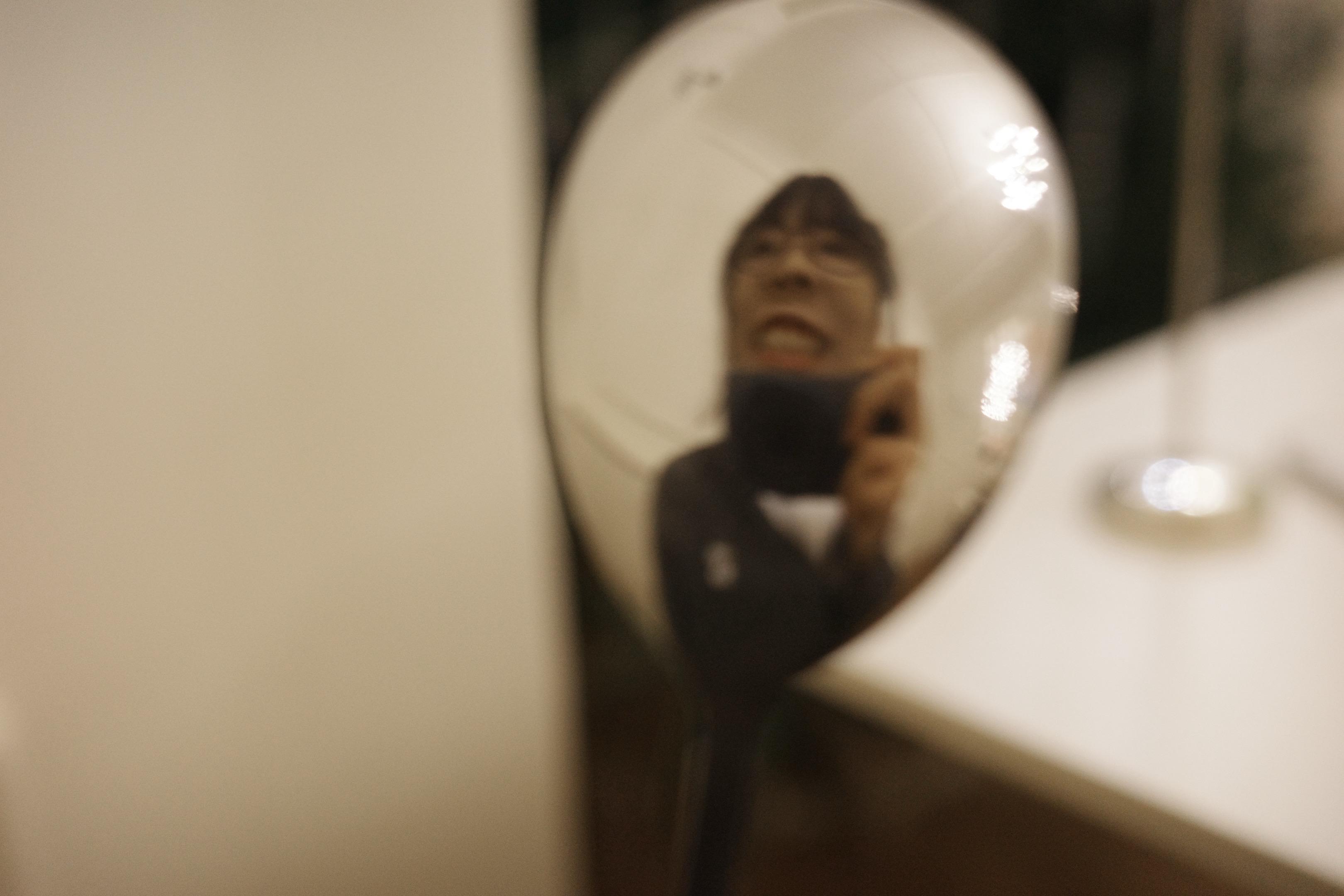 她在粉色碎花床单前站定黑裙与花影织成暧昧的网窗帘滤过的光线是淡蓝的落在她肩