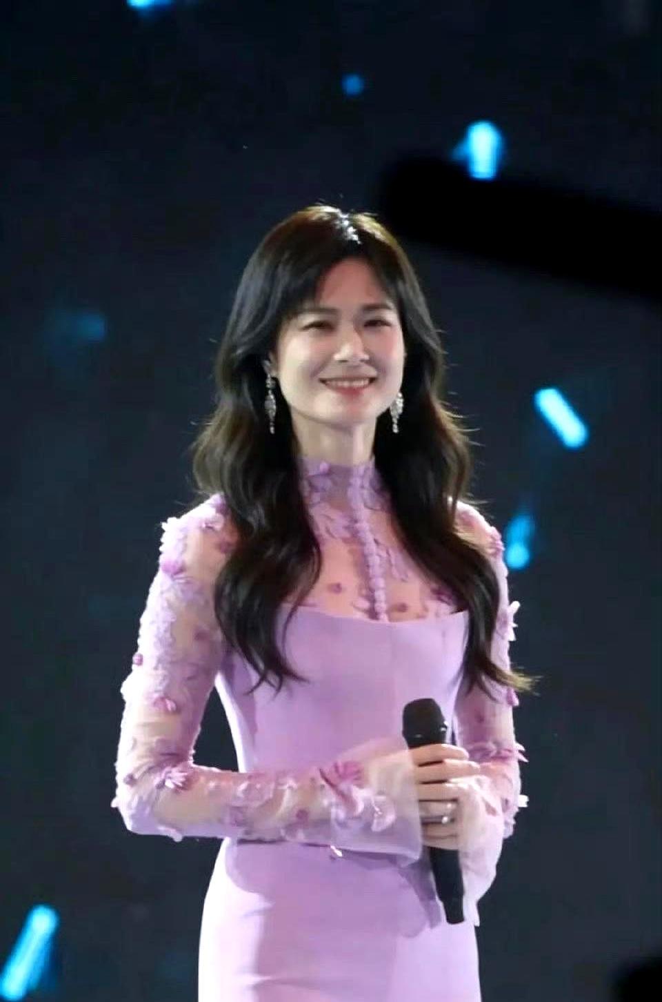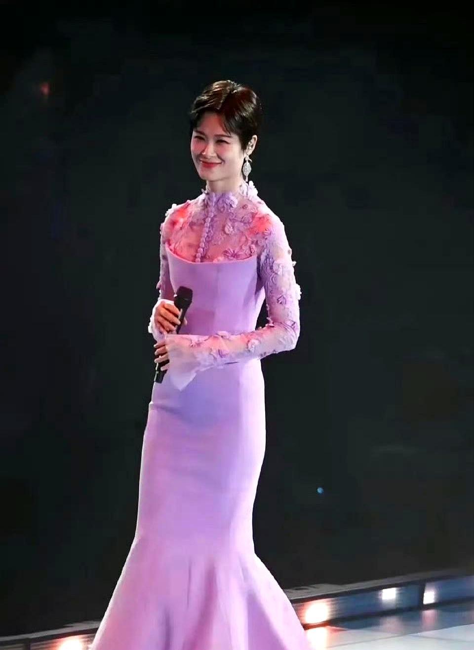 拒绝裙子20年,李宇春用一条粉裙震碎所有人。 一条香芋紫鱼尾裙,裹住身体。侧