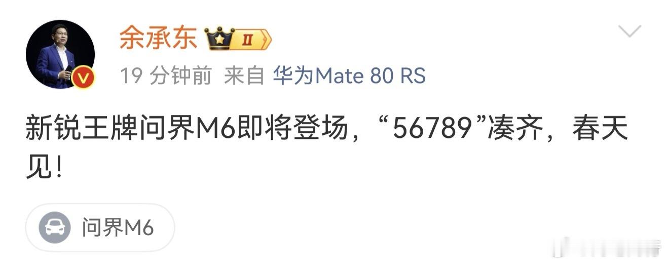 余总官宣问界M6春天见,这牌真好呀~余承东官宣问界M6春天见