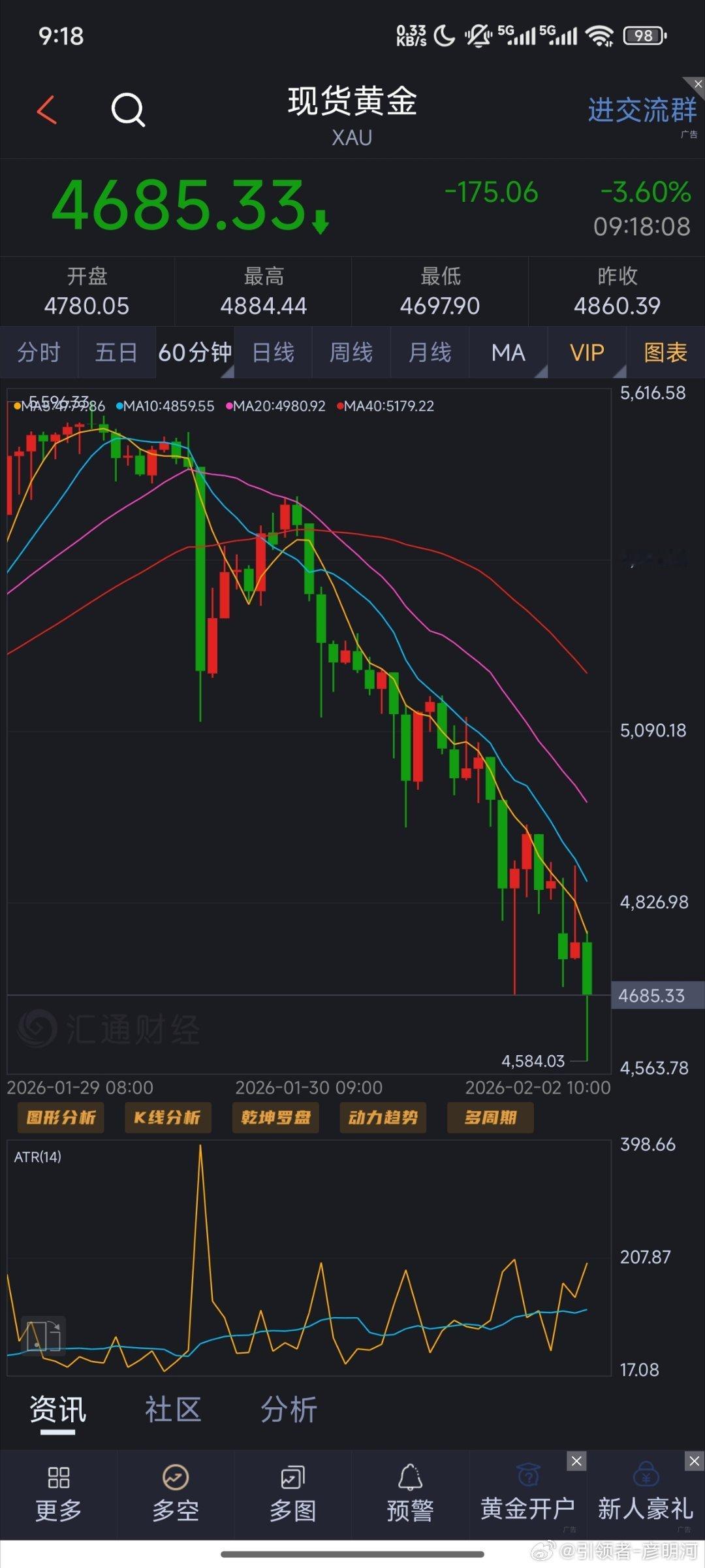 太过于老套也太过于经典,上周随着大户的全部抛售,周一散户跟风继续抛!黄金再度迎来新低!我说过大崩最少连着崩三天,多头介入绝不是最佳时机,这次最少去4500一看!中线再度吃麻!不要太舒服!现在上来一点,4685直接短空一次,目的地4650(个人观点,仅供参考)