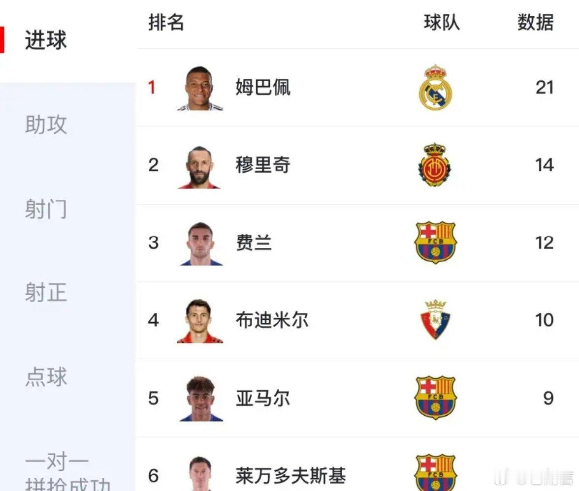 姆巴佩点球绝杀皇马本轮打个巴列卡诺都这么费劲,最后靠着超长加时姆巴佩点球绝杀,继续保持对巴萨的紧逼!姆巴佩目前射手榜稳居第一,而且是一骑绝尘,领先第二名7球!但皇马联赛一共才进了47个球,姆总21球占了近45%快一半了,但队内第二多的是维尼修斯的6球,其他人就不用说了,这么依赖某个人,不像是一个豪门应有的进攻格局,看看射手榜就知道,前6有3个巴萨的,只有一个皇马的,前20有5个巴萨的,仍然只有一个皇马的,可以说巴萨更加均衡,火力点多,整体更加稳定一些,而感觉皇马太依赖姆巴佩了,再这么搞下去,搞不好今年要四大皆空了,姆总太难了!